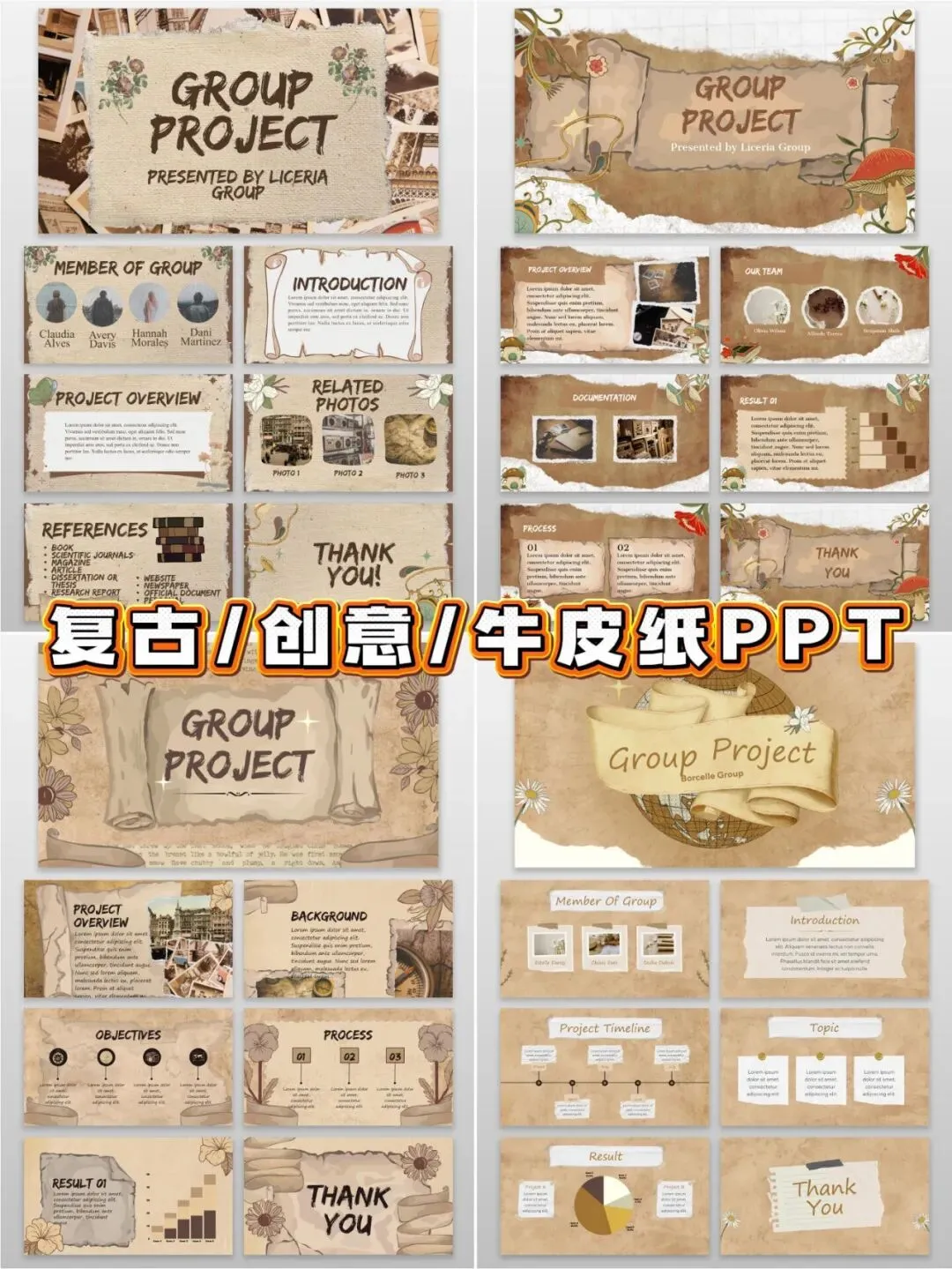 羊皮卷复古风ppt模板简约欧式设计感毕业答辩演讲工作总结