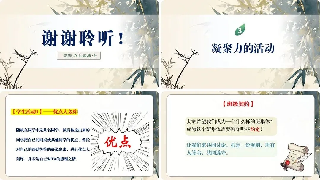 适合初高中各年级班会课使用,帮助班主任轻松开展班级凝聚力建设活动,让班会课更加生动有趣。