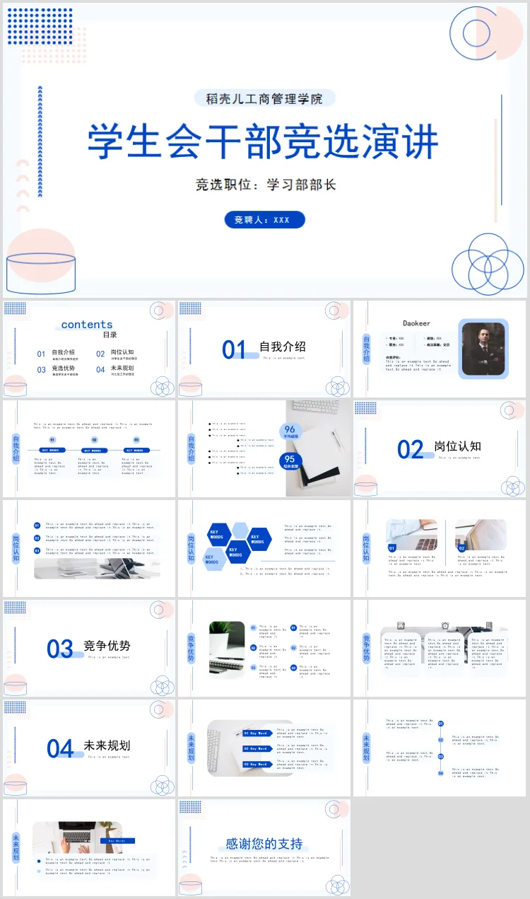 学生会干部竞选PPT模板50套,可下载可编辑。部分内容预览如下,完整版下载方式见文末。