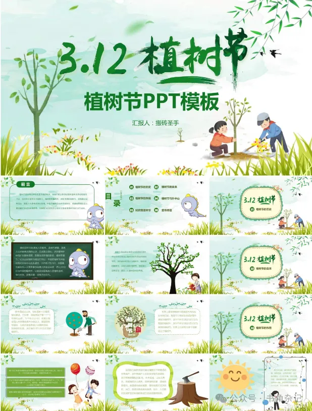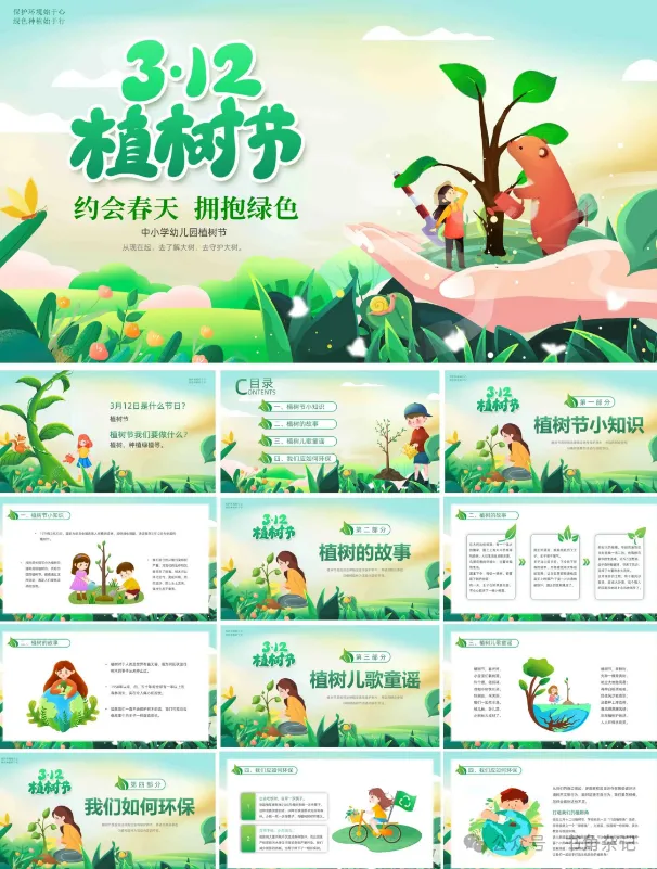 这里分享33套植树节主题PPT模板。 资源涵盖环保理念和校园教育场景。 整体采用绿色清新设计风格。 文件下载后可以直接编辑。