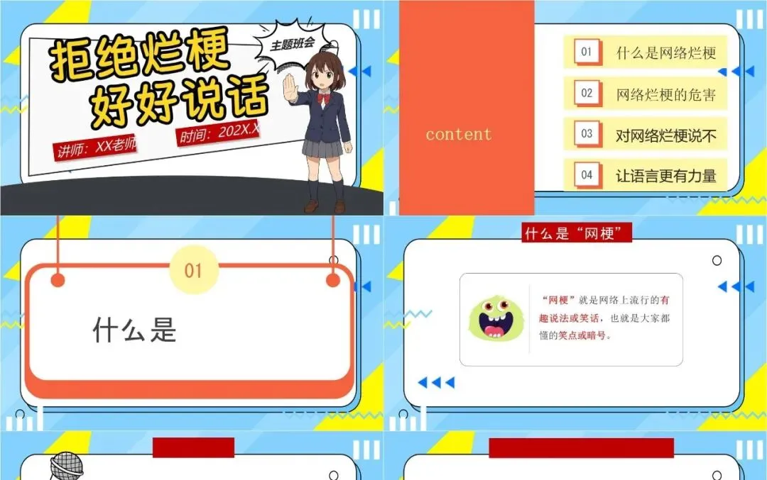 拒绝烂梗好好说话,中小学主题班会PPT模板,文明用语教育必备