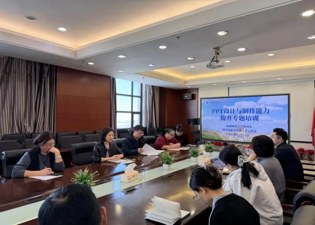 为深入响应学校有组织科研工作部署,强化图书馆馆员科研能力建设,2026年3月13日上午11:00,图书馆在11楼1109会议室召开第五次馆员科研方向讨论会暨“图书情报学创新人才工作室”第一次会议。本次会议以“PPT设计与制作--能力提升专题培训”为主题,将科研方向交流与实用技能培训相结合,旨在提升馆员科研成果展示能力,明晰科研发展方向,助力学校有组织科研工作落地见效。
