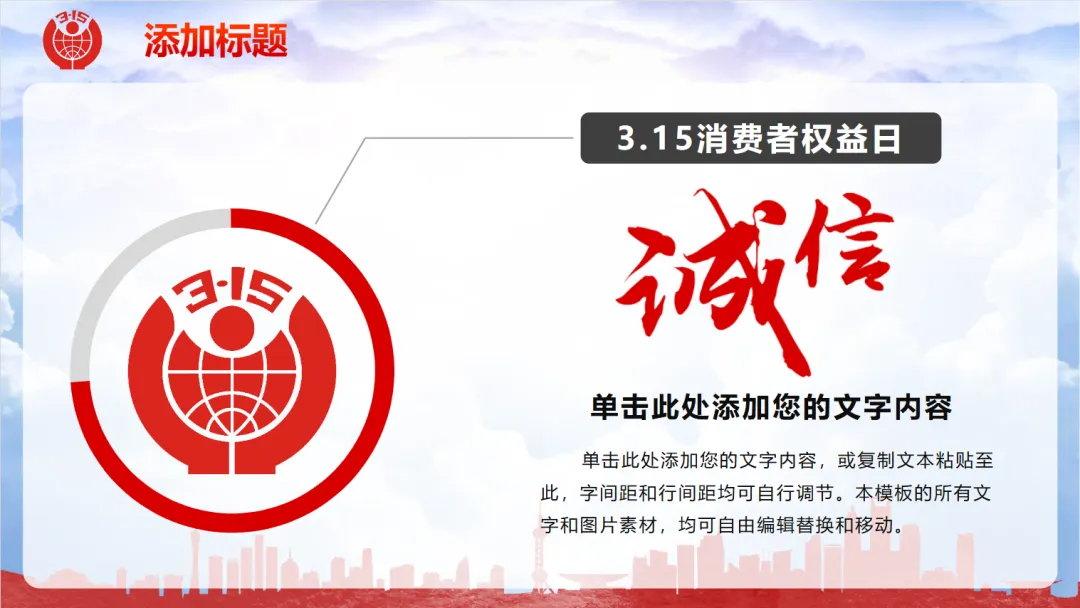 每年3·15,宣传教育、主题汇报、知识科普都少不了一份亮眼的PPT。但从零排版、找素材太耗时?这套3·15消费者权益日通用PPT模板,帮你高效完成工作,轻松传递“诚信消费”理念。