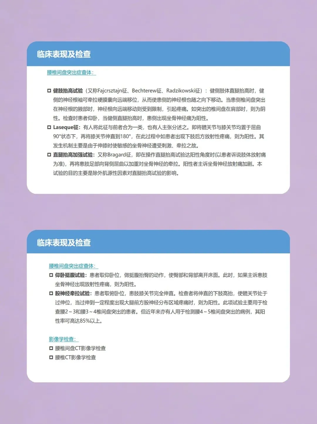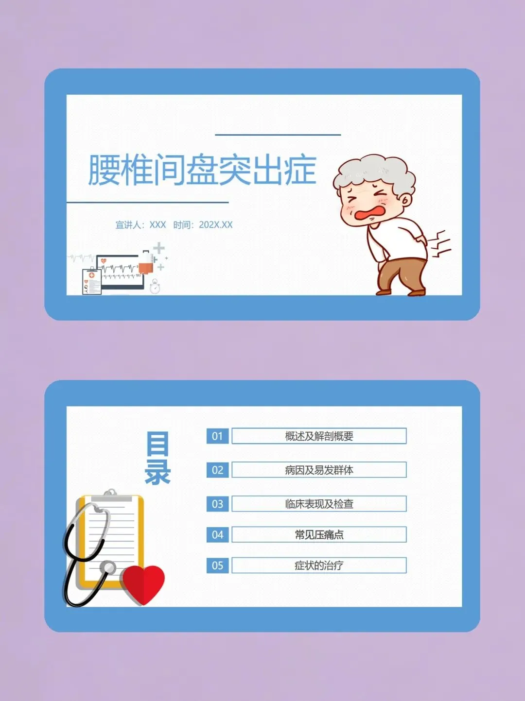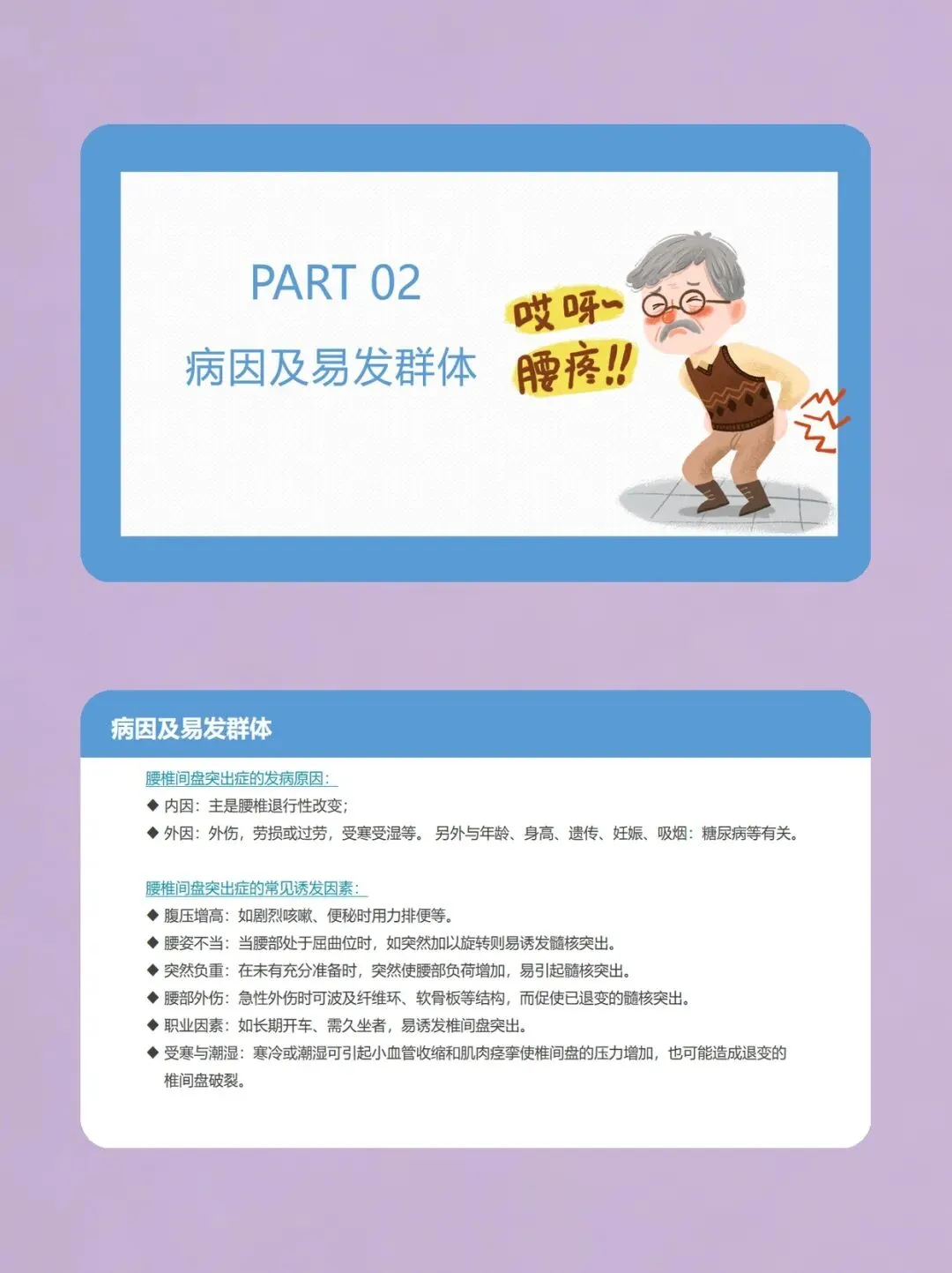 腰椎间盘突出症是临床上较为常见的腰部疾病之一。主要是因为腰椎间盘各组份(髓核、纤维环及软骨板),尤其是髓核,发生不同程度的退行性病变后,在外界因素的作用下,椎间盘的纤维环破裂,髓核组织从破裂之处突出(或脱出)于后侧方椎管内,从而导致相邻的组织,如脊神经根和(或)脊髓等受到刺激或压迫,产生腰痛,一侧下肢或双下肢麻木、疼痛等一系列临床症状。严重可引起下肢瘫痪。