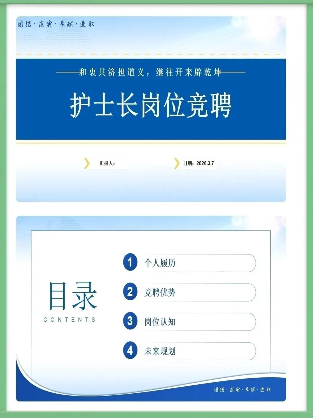 护士长岗位竞聘ppt模板课件模板(共20页)