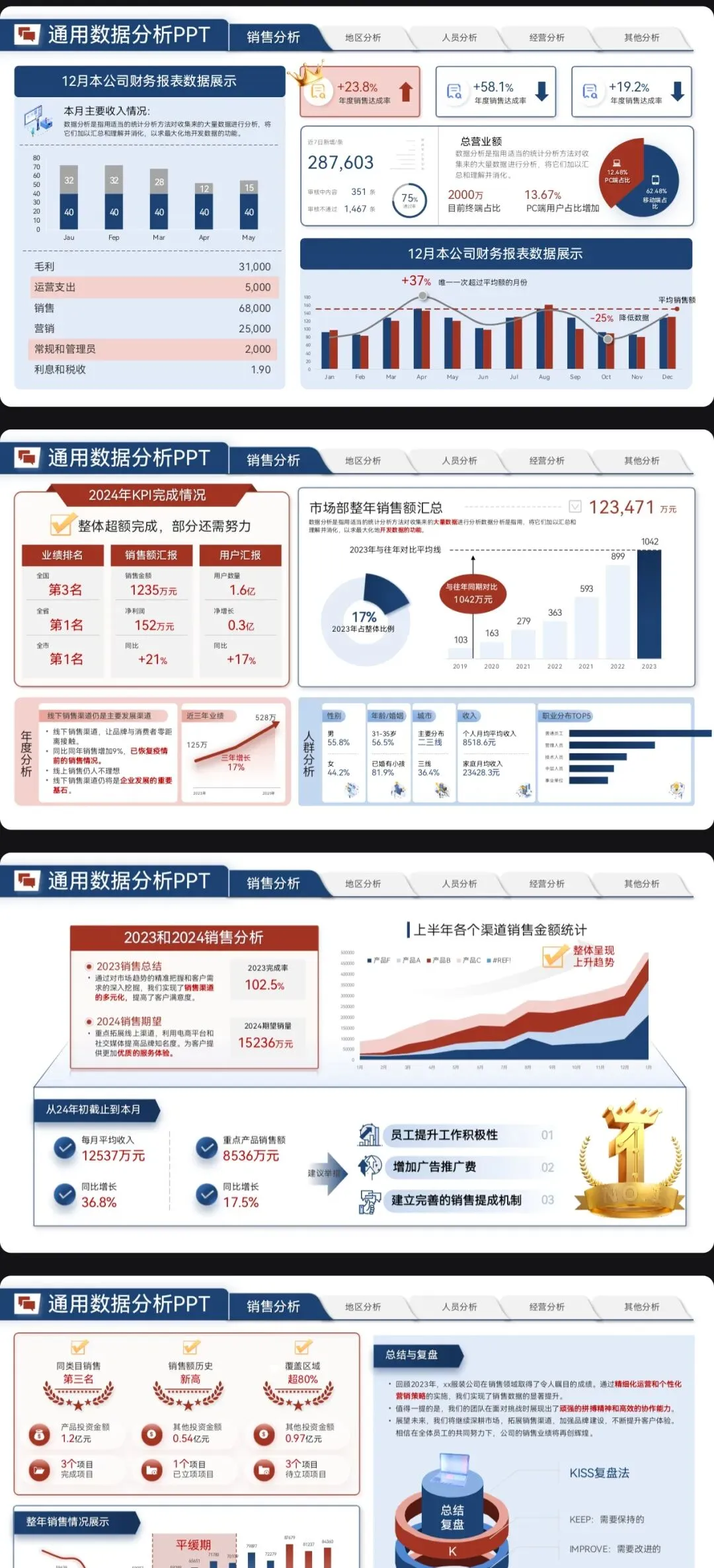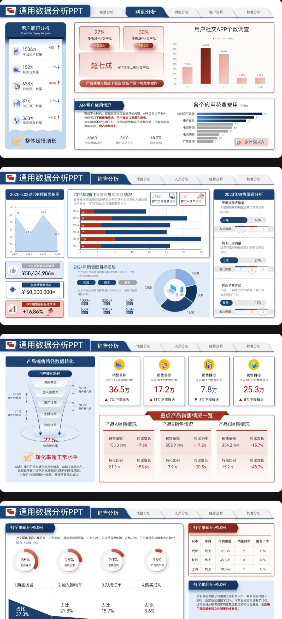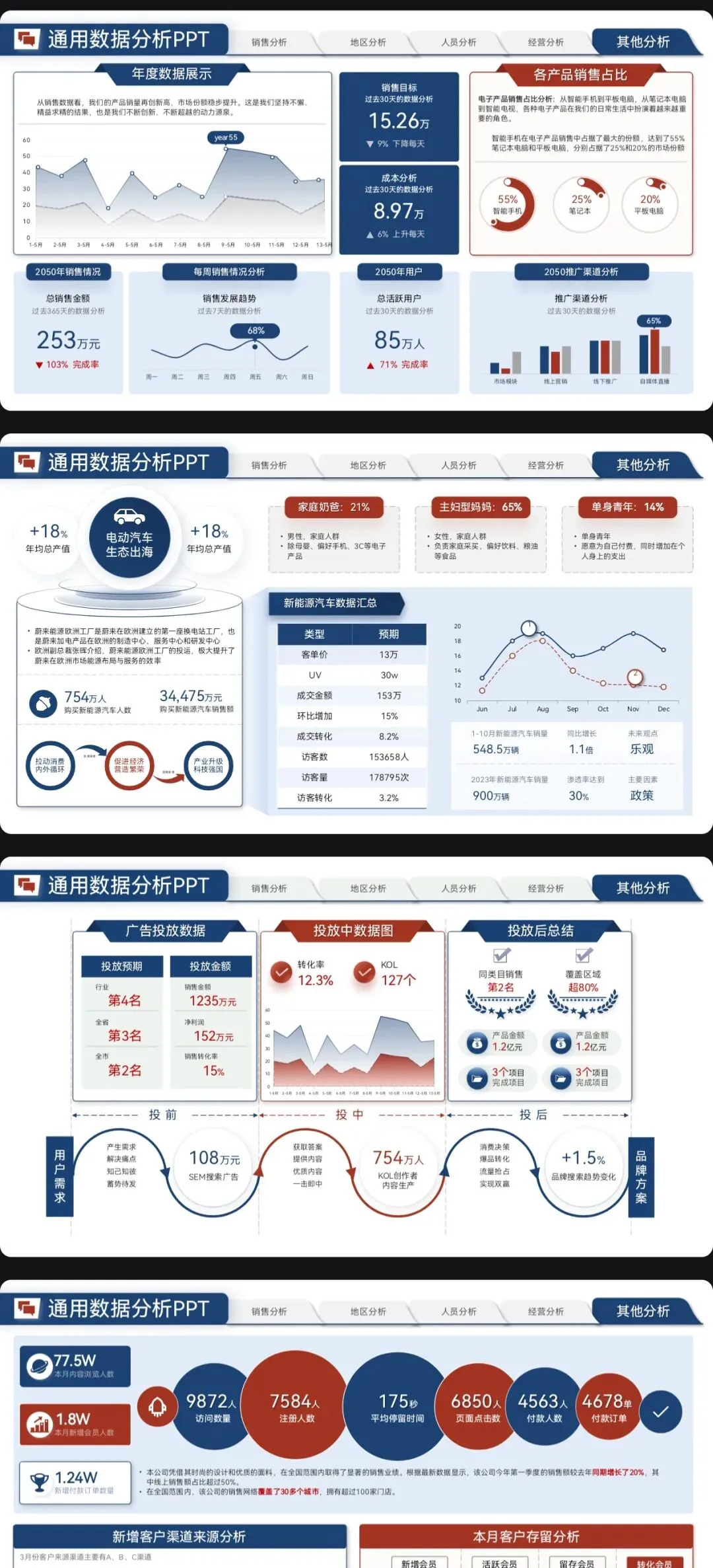 >营销数据分析汇报PPT模板:可视化模板 + 实战营销拆解模型框架