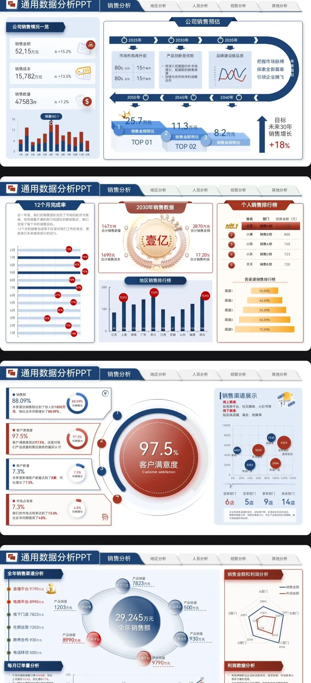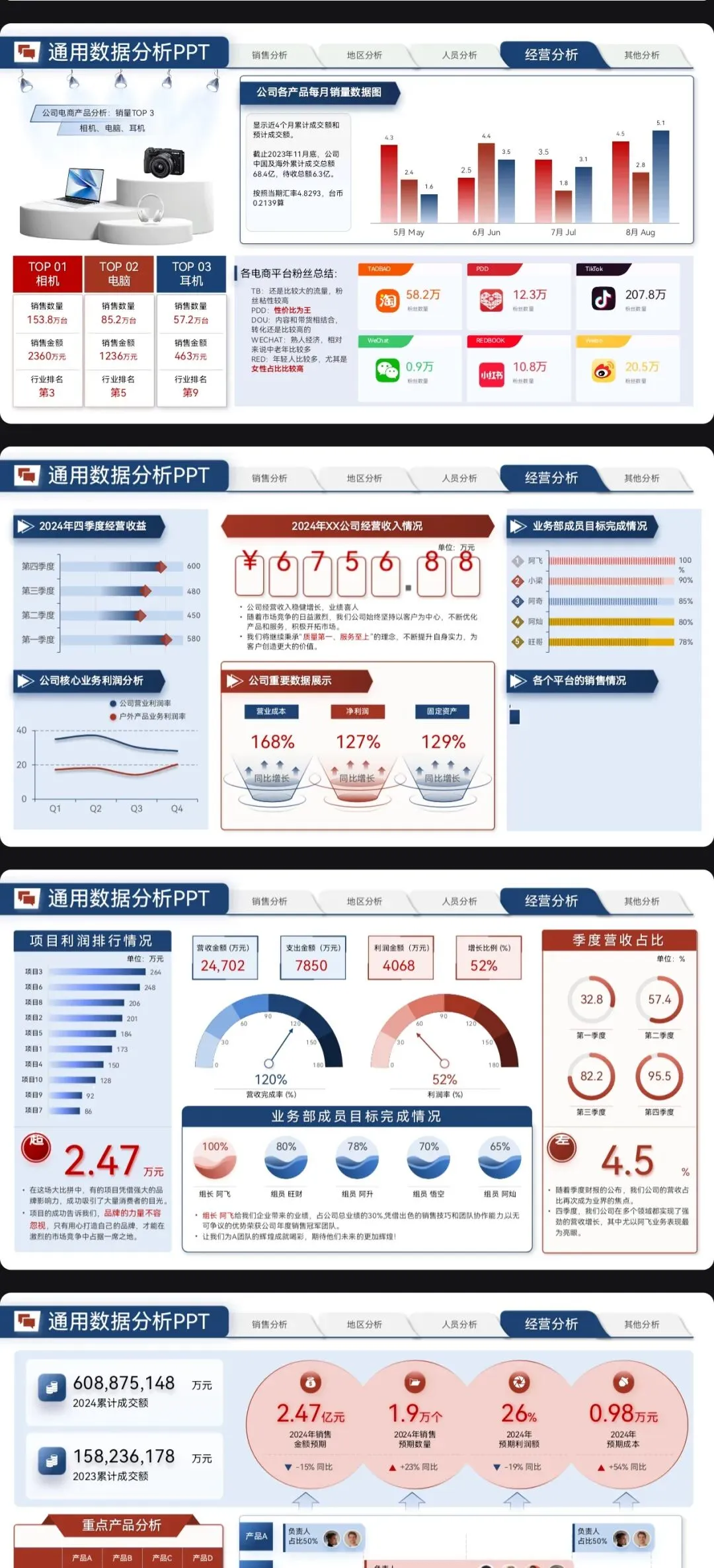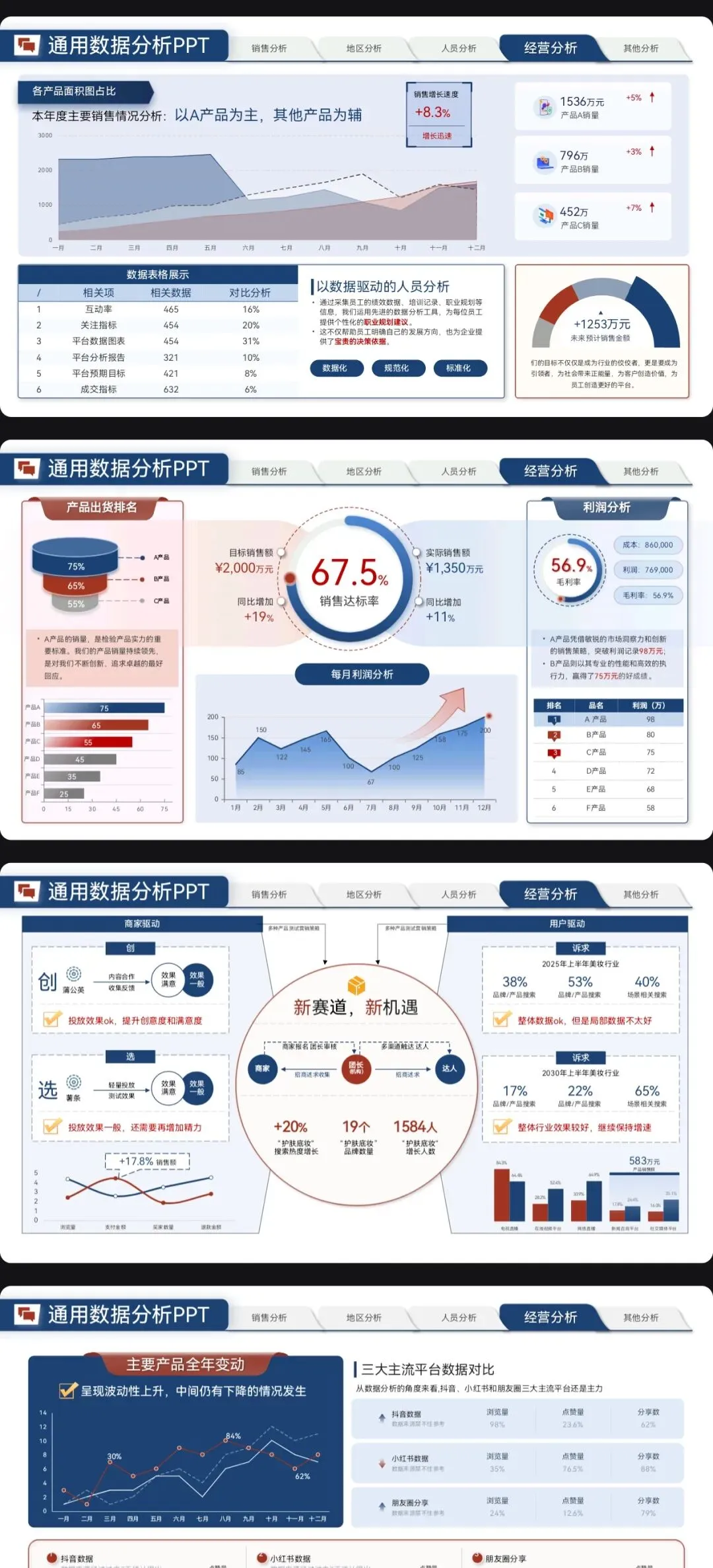 营销数据分析汇报PPT模板:可视化模板 + 实战营销拆解模型框架