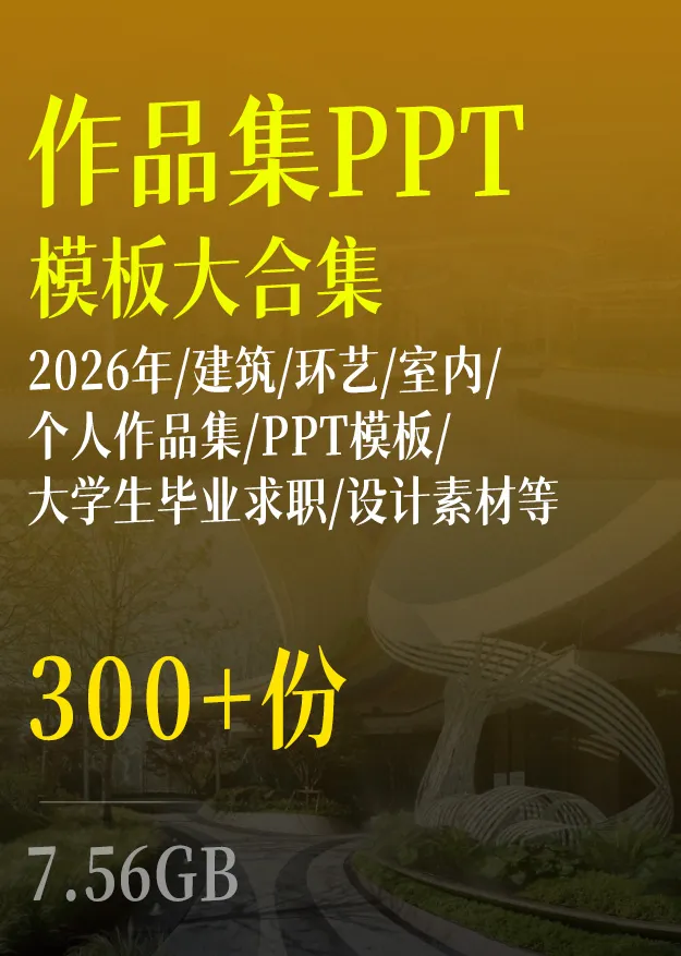 300+份作品集PPT模板大合集,2026年建筑环艺室内个人作品集PPT模板大学生毕业求职动态平面设计素材(共计7.56GB)