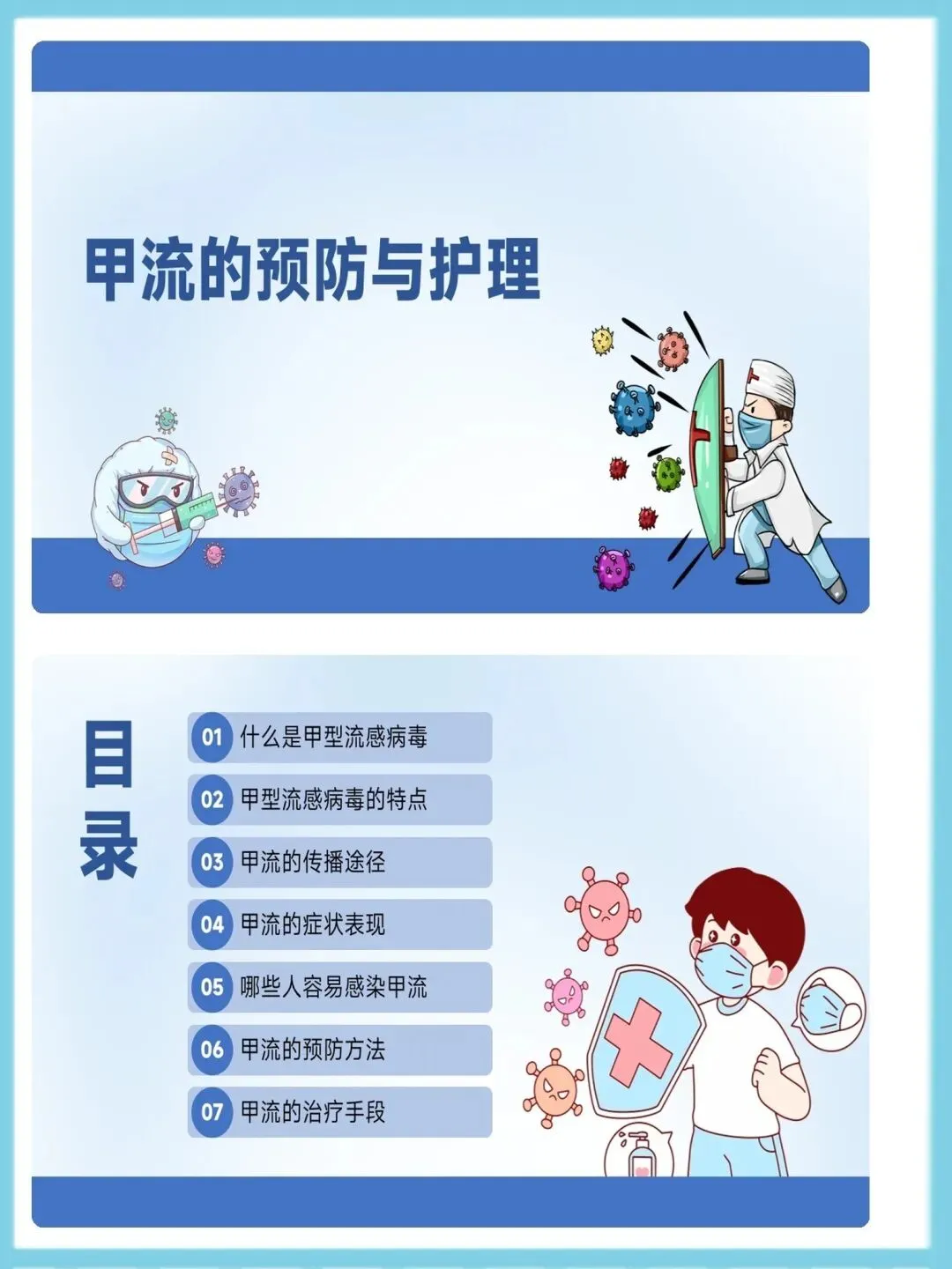 >甲流的预防与护理ppt模板(可编辑)