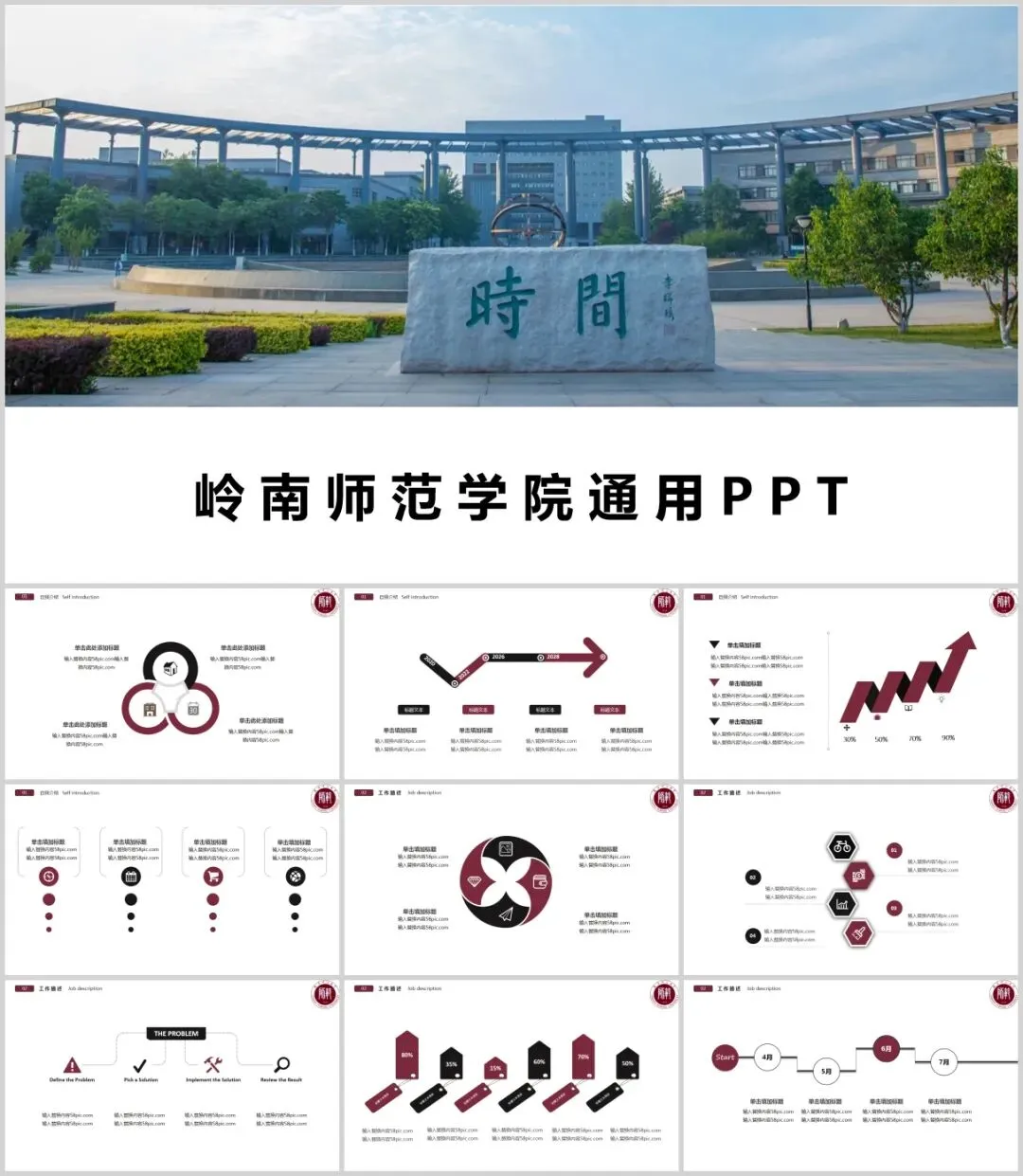 包含了高校专属校徽,100+套精选PPT,正式大气中又不失高级活泼,很能展现个性与品位,适用于各种毕业答辩、总结汇报、活动策划、个人简历、宣传推广等场合。快快收好!勤奋严谨 自树树人
