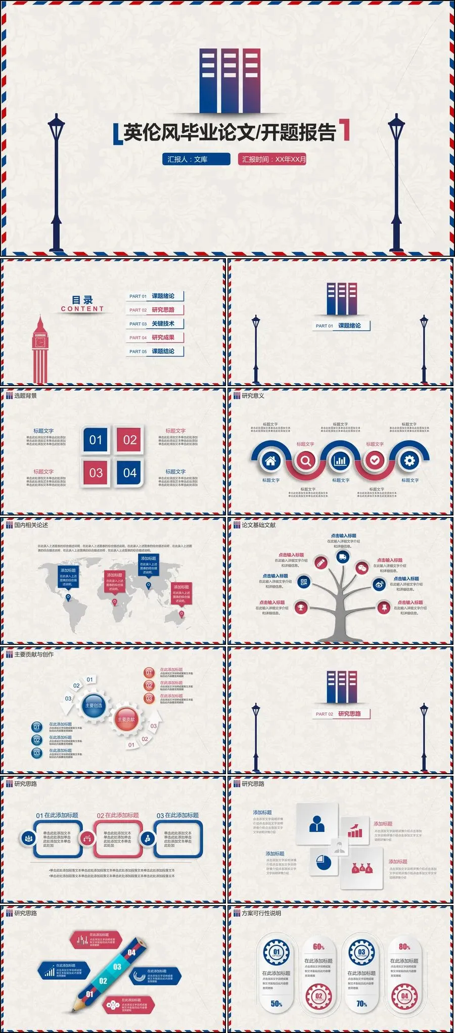 【37套古典英伦风答辩汇报总结等PPT模板】