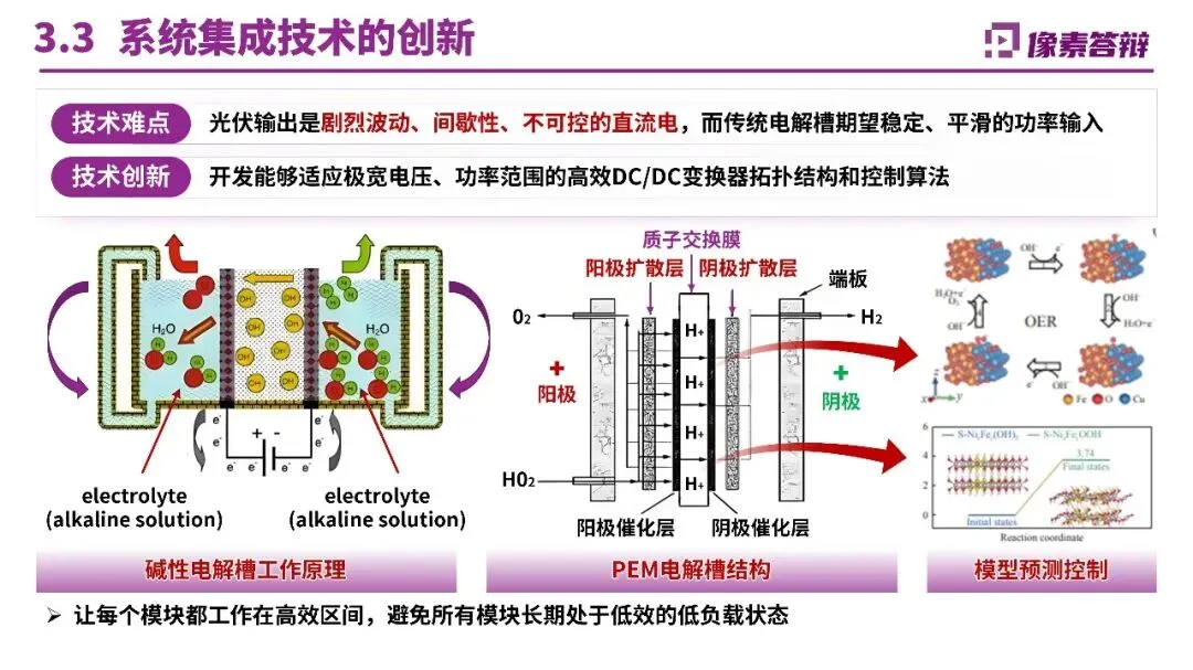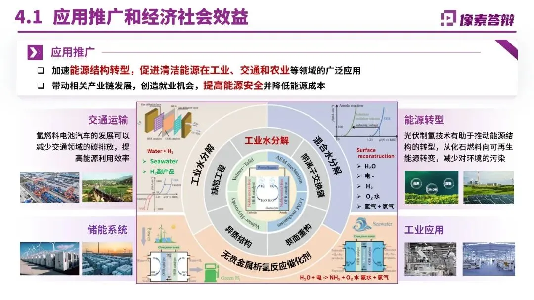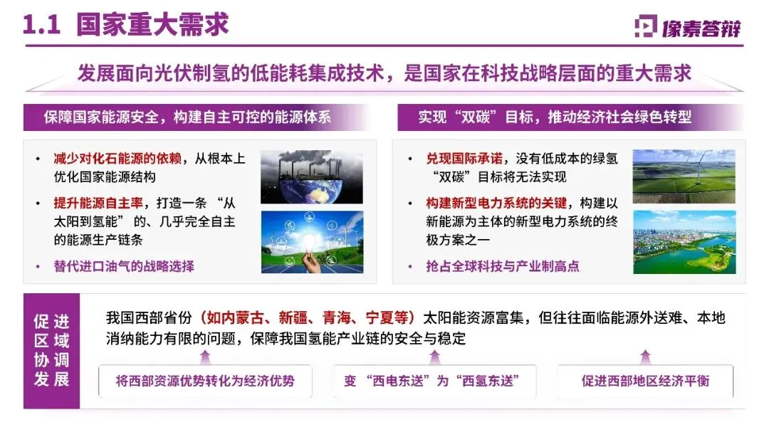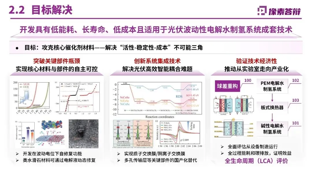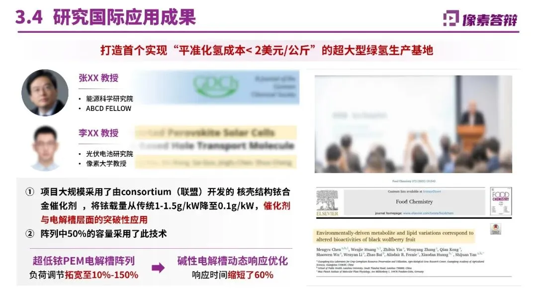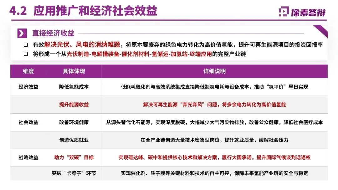 三、内容呈现:自然化表达与证据支撑避免生硬堆砌“引擎、抓手”等套路化词汇,采用自然排比增强节奏感,如“敢于担当、善于担当、乐于担当”。每个创新点后紧跟应用场景证据,如库车项目年产2万吨绿氢替代天然气制氢,减碳48.5万吨/年;纳日松项目采用IGBT电源实现10%/秒动态响应,形成“电氢联动”收益模式。对比页设计多维度表格,将关键指标与国内外技术并排,优势项用红色色块突出。