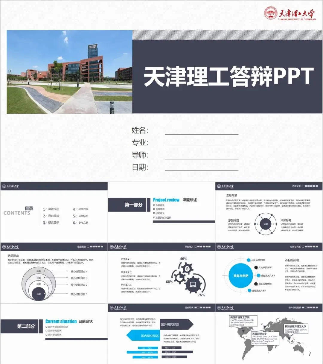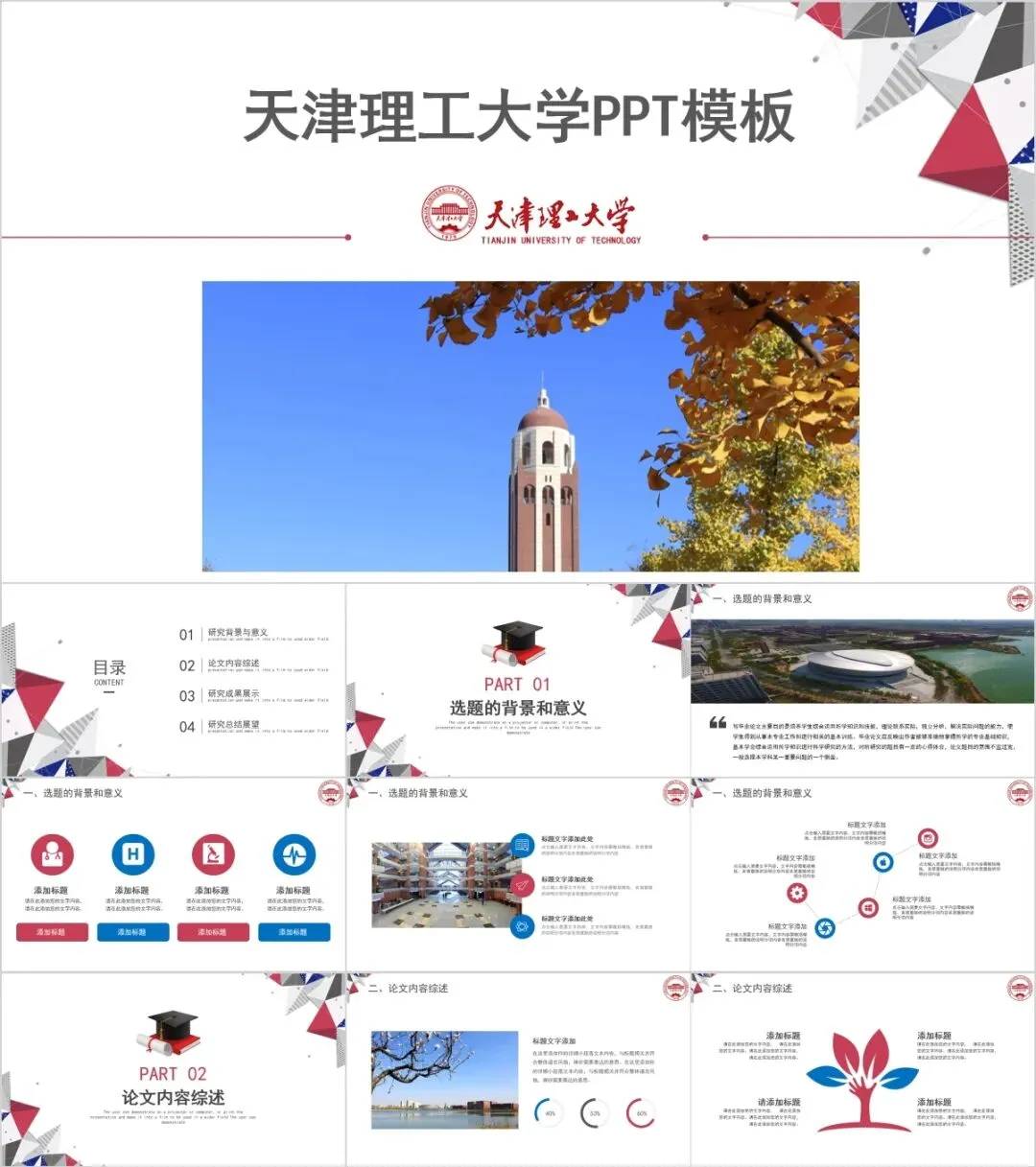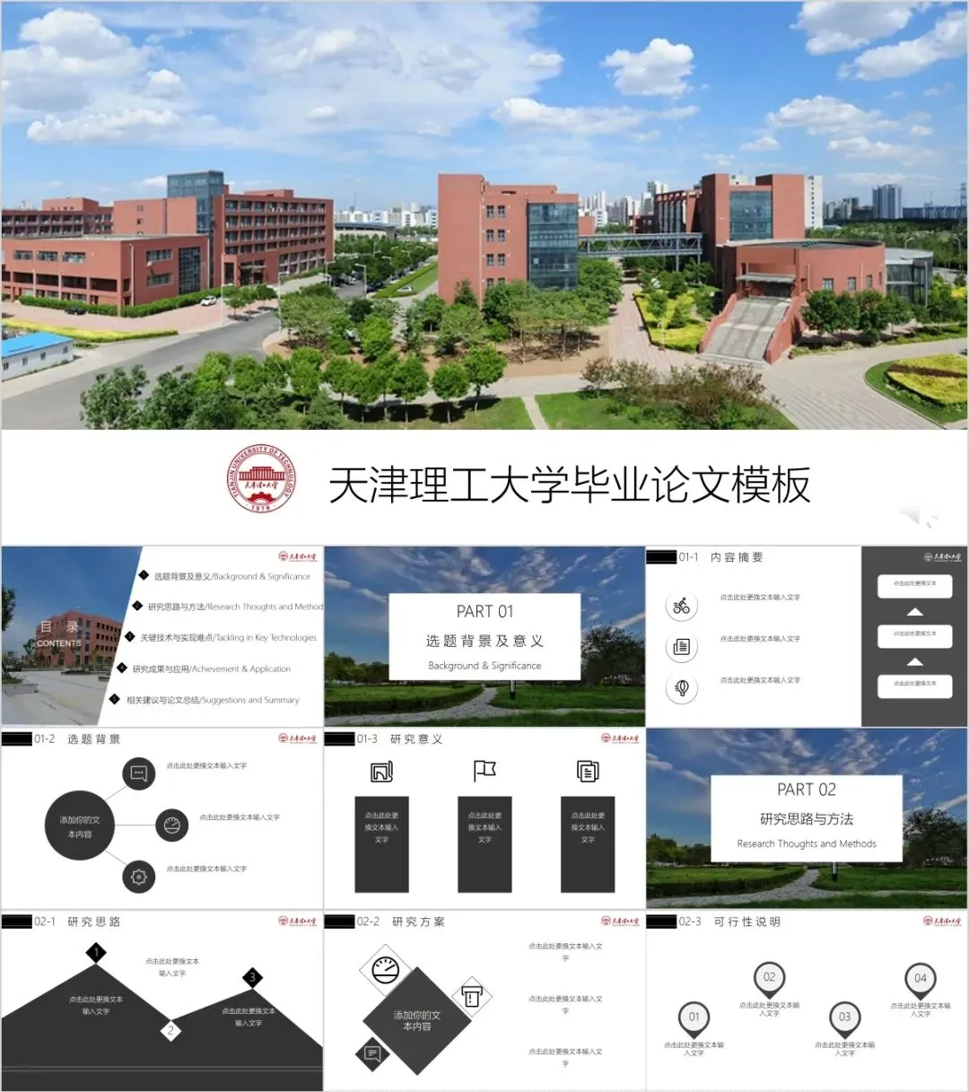 天津理工大学专属PPT模板来了,喜欢的同学不要错过啦!