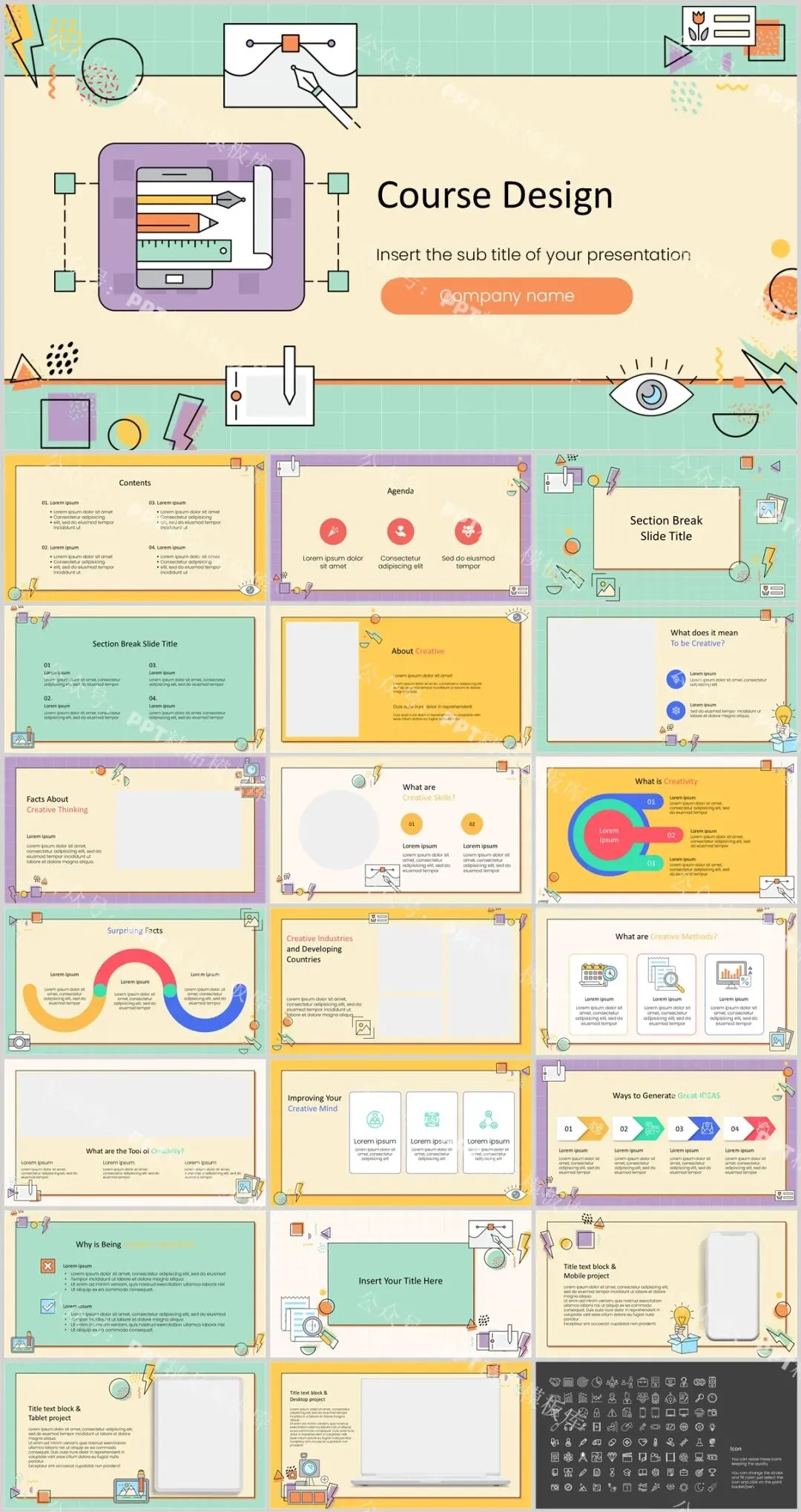 复古马卡龙色插画风课件设计ppt模板,适用于教育培训 、营销宣传 (创意提案、品牌策划)、自我介绍 (设计师作品集)等相关主题设计应用。主体文字及图片可替换修改,文字修改均可直接点击文本框进行编辑,图片更改可选中图片后单击鼠标右键插入更换图片,也可根据自身需求增加和删除。