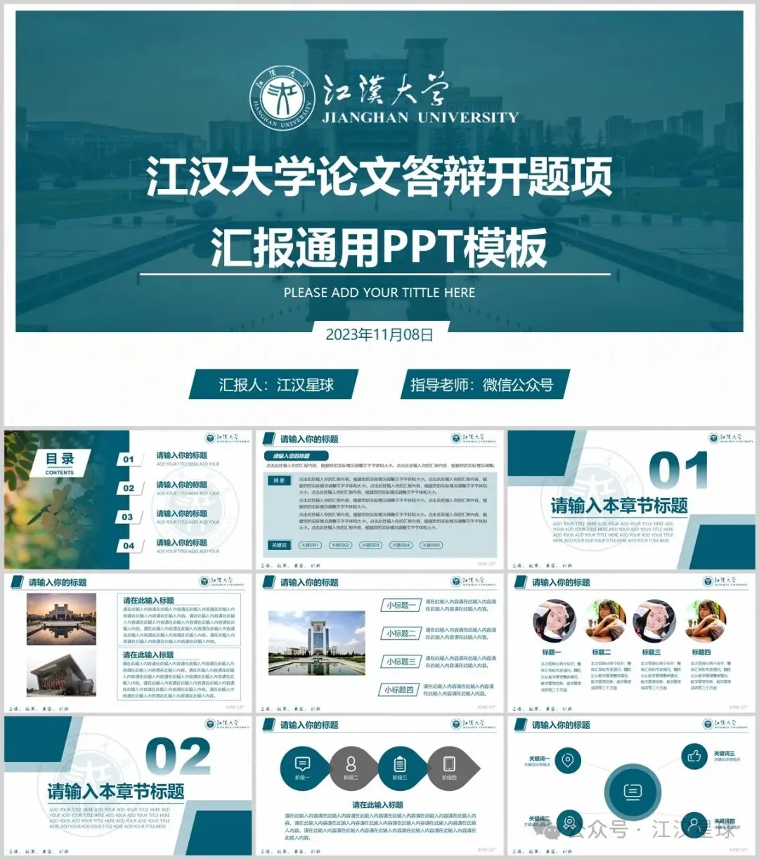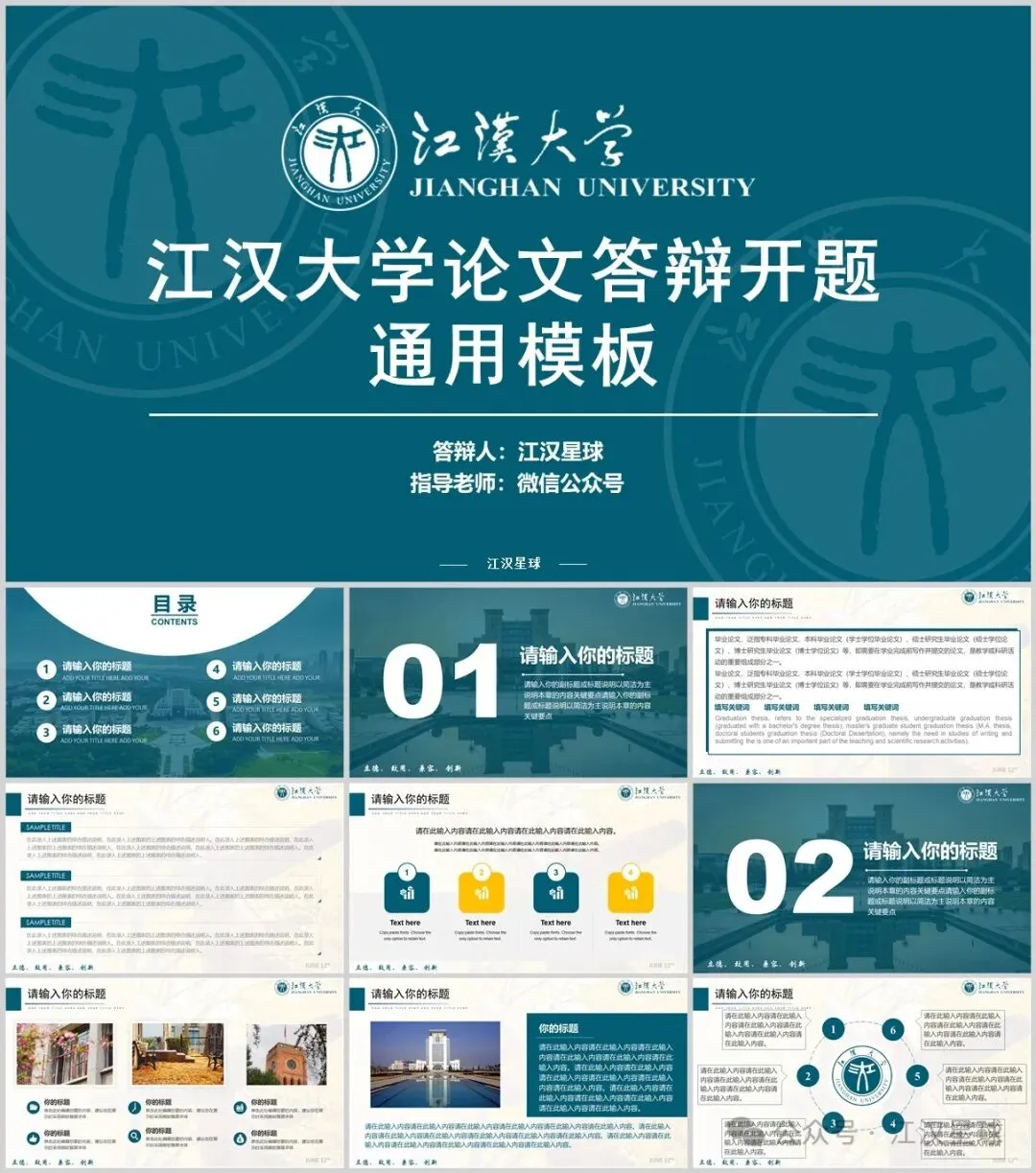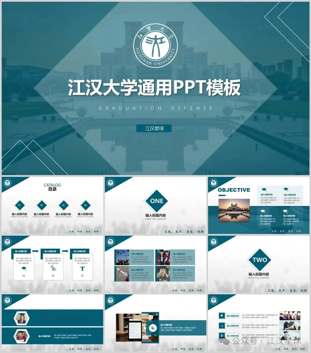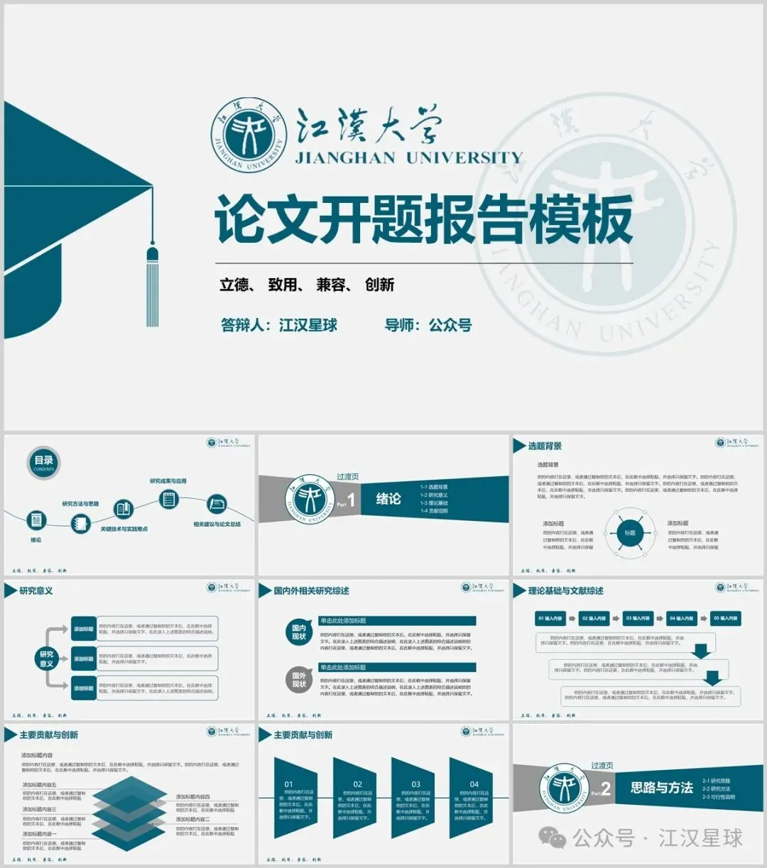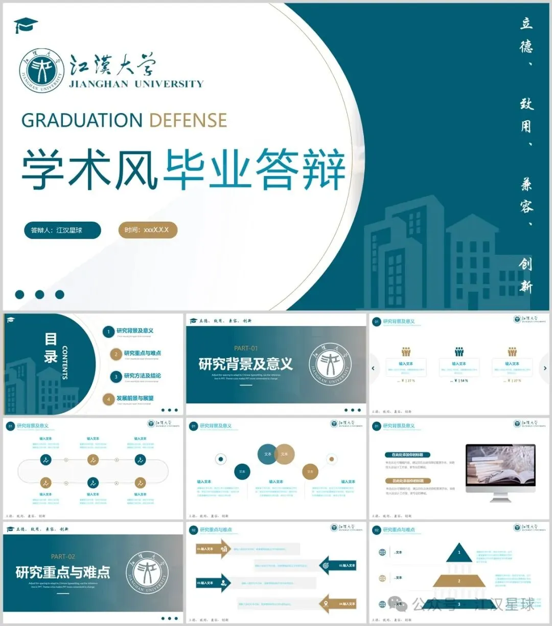 “江汉大学”PPT模板来了~