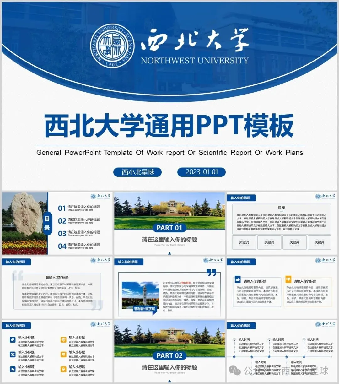 西北大学PPT模板