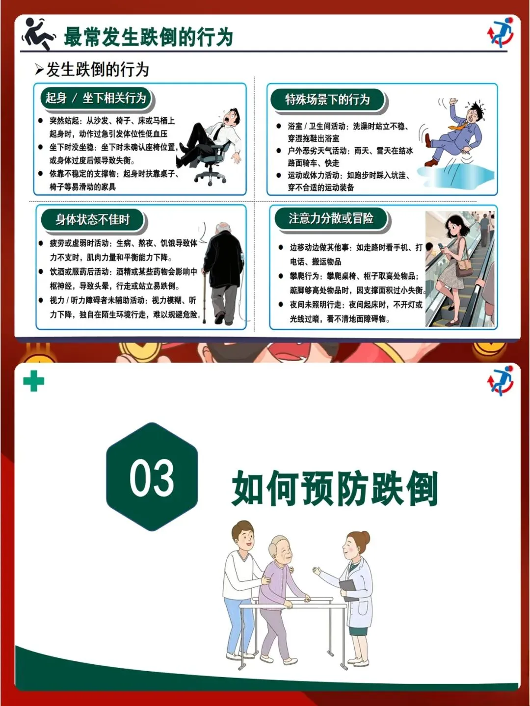 - 设计"跌倒康复操",每天两次集体训练,重点锻炼下肢肌力和平衡能力