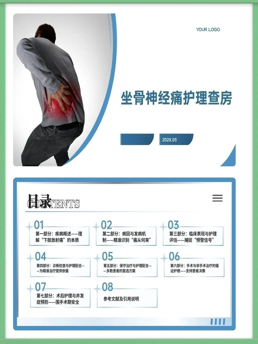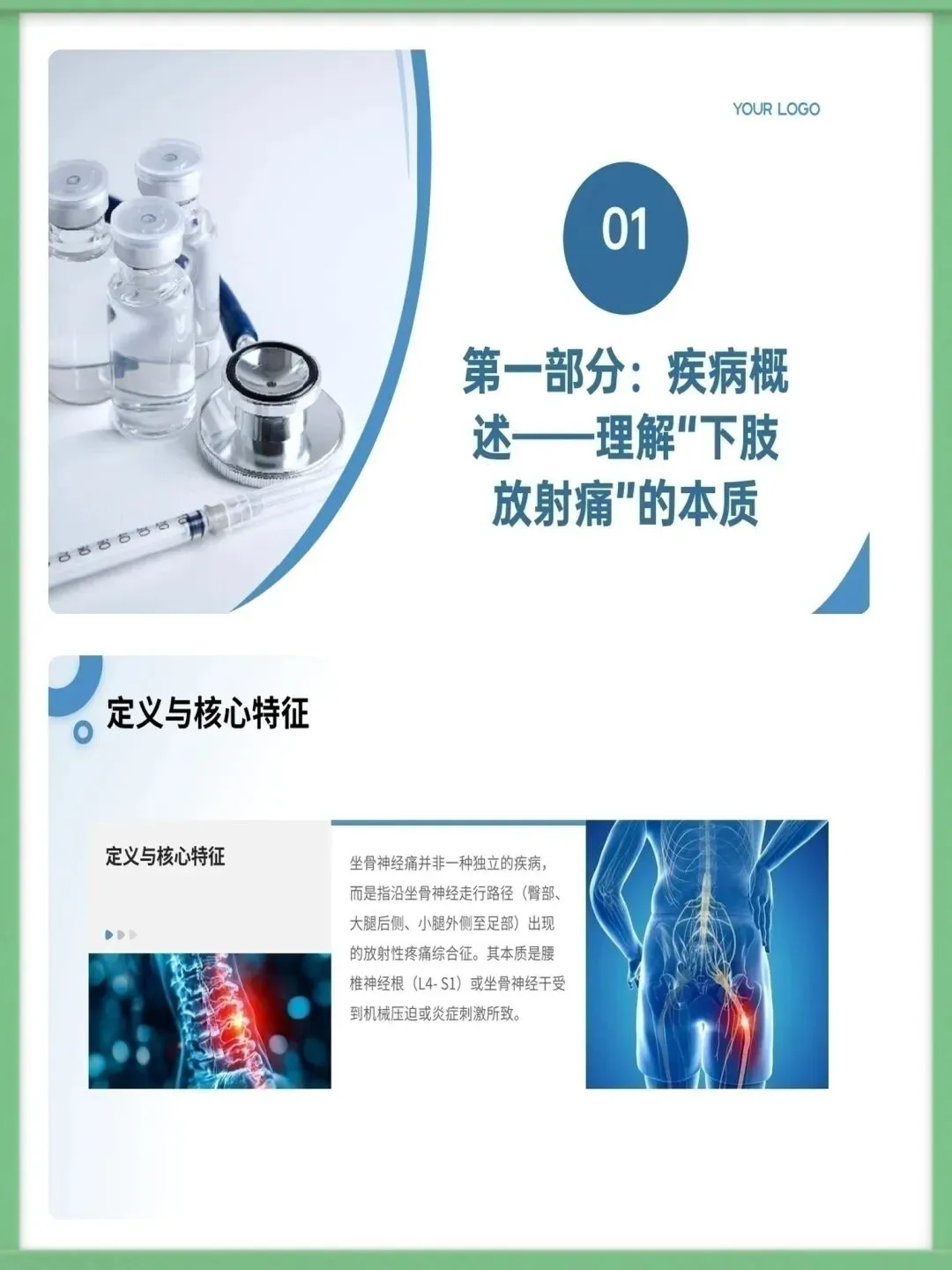 >护理ppt模板|坐骨神经痛护理查房ppt模板课件模板(共38页)