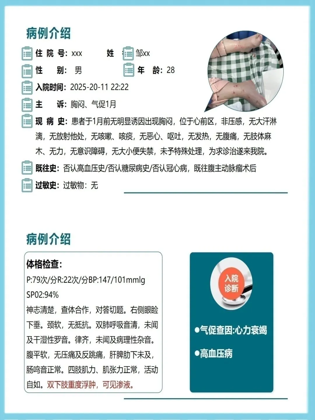><护理ppt模板>一例心衰患者护理查房ppt模板(可编辑)