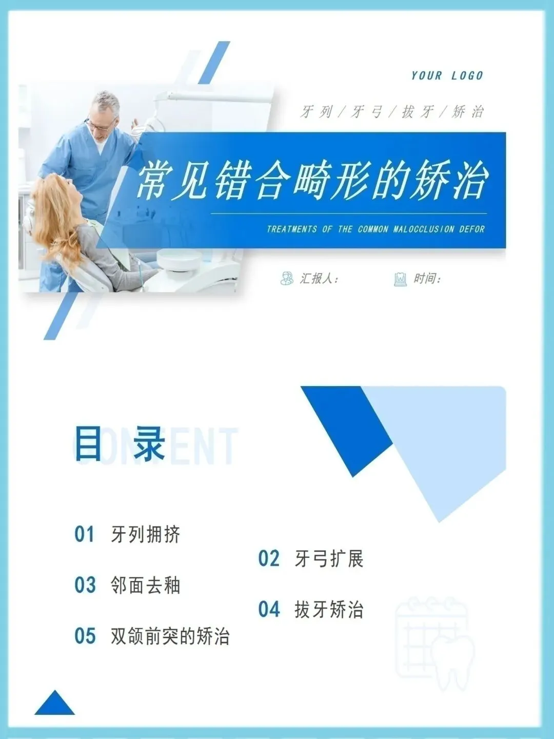<护理ppt模板>常见错颌畸形的矫治ppt模板(可编辑)