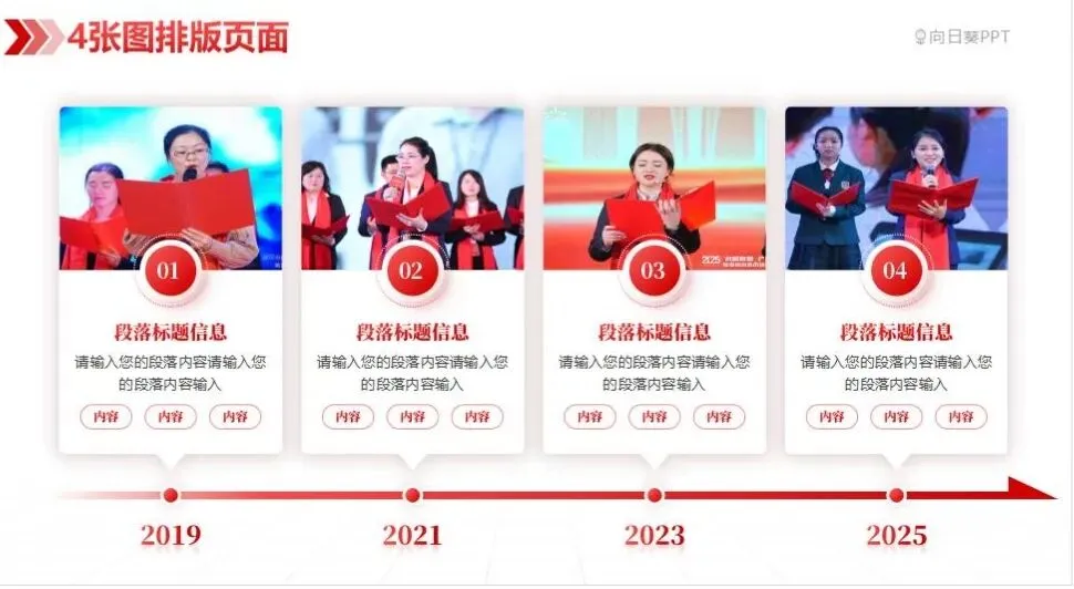 3. 上图下文:上方放数据图表/高清大图,下方配1-2行解读,适合数据汇报、成果展示