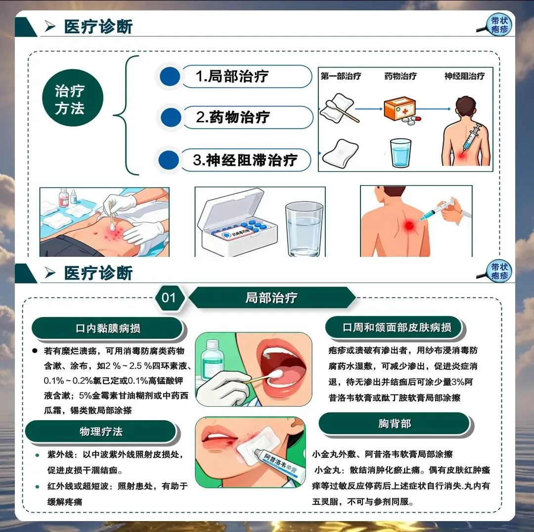皮肤护理是带状疱疹护理的核心环节。对于未破溃的水疱,保持清洁干燥,避免摩擦和挤压。对于已破溃的水疱,采用生理盐水清洁,外用抗病毒软膏或抗生素软膏预防继发感染。