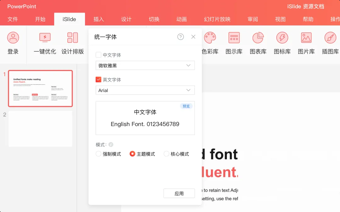 统一处理:全篇不超过2种字体,用iSlide"统一字体"批量修改