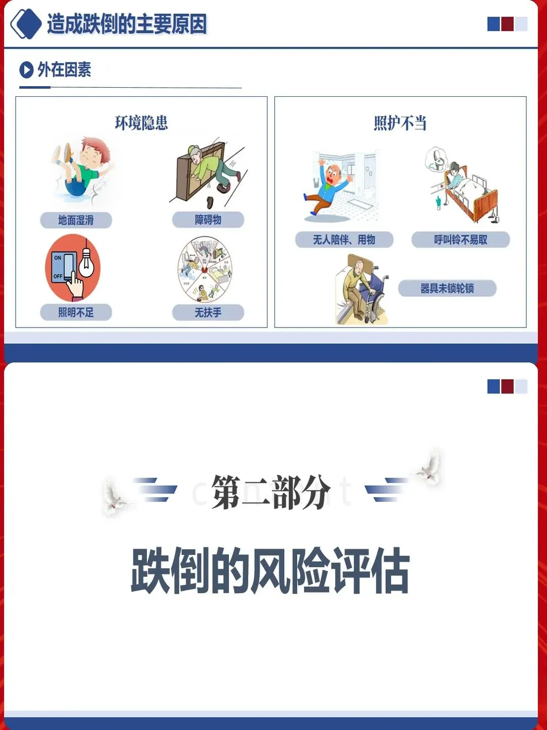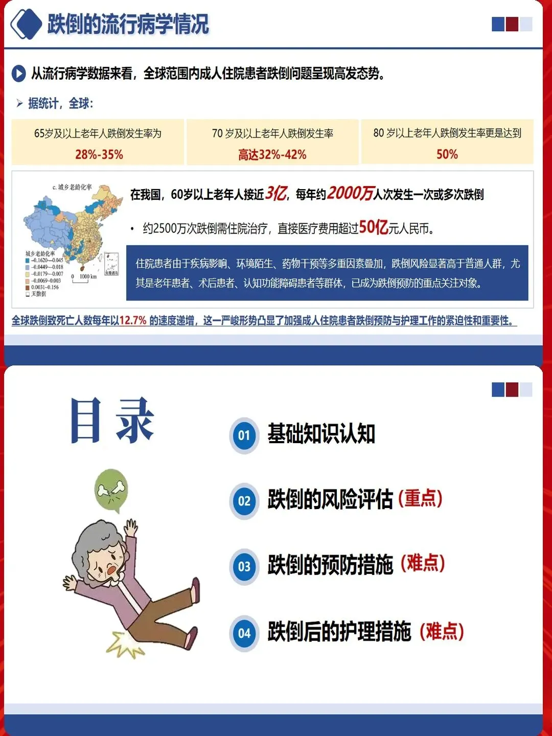 护理干预必须摒弃"一刀切"模式,实施分层管理。低风险患者:加强健康宣教,提高自我防护意识;中风险患者:增加巡视频率,协助如厕,指导安全体位转移;高风险患者:实施24小时监护,必要时使用约束,但必须严格掌握适应证,定期评估约束必要性。