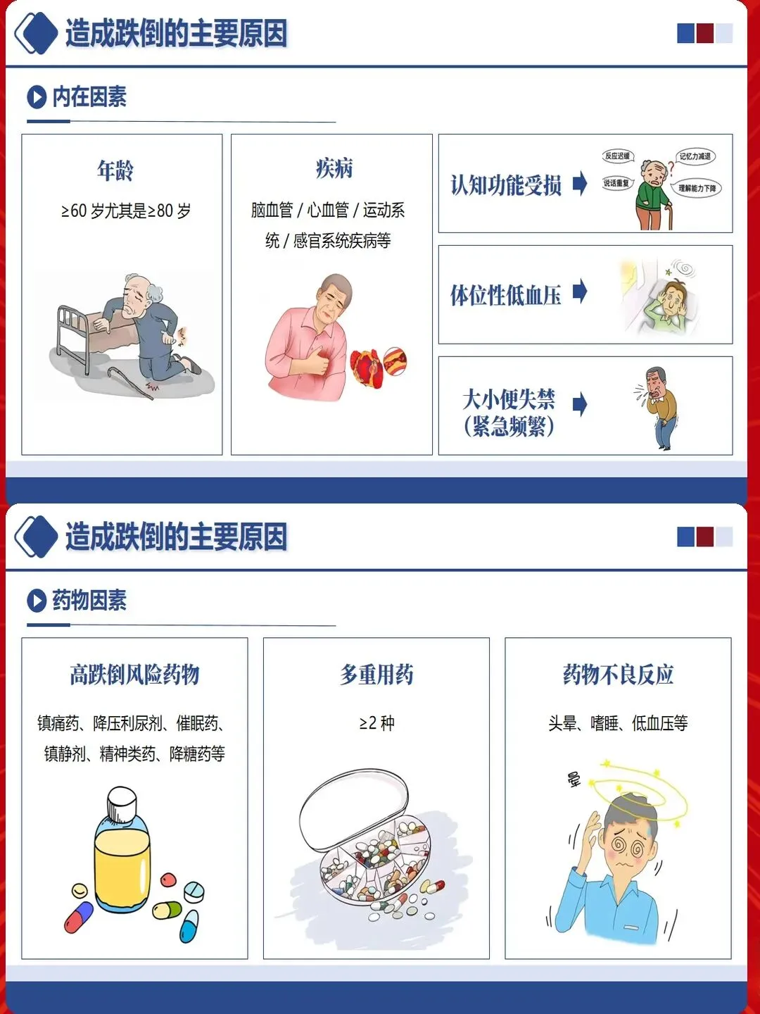 跌倒风险评估不应流于形式,而应建立动态、个性化的评估体系。采用Morse评分量表、Hendrich II风险评估工具等标准化方法,结合患者个体特征进行综合判断。重点关注年龄≥65岁、既往跌倒史、认知功能障碍、步态异常、使用高风险药物(镇静剂、降压药、利尿剂)、视觉障碍等高危因素。