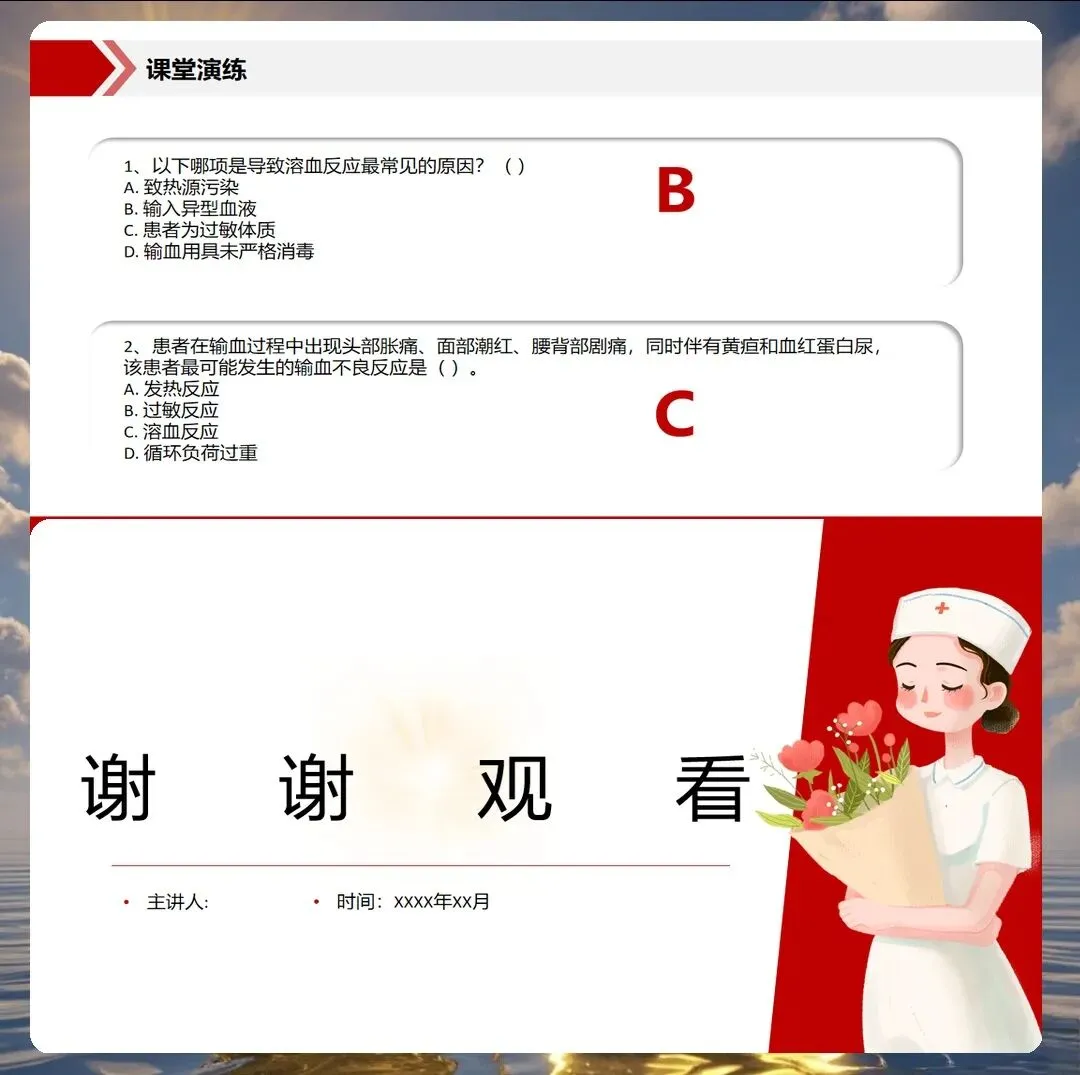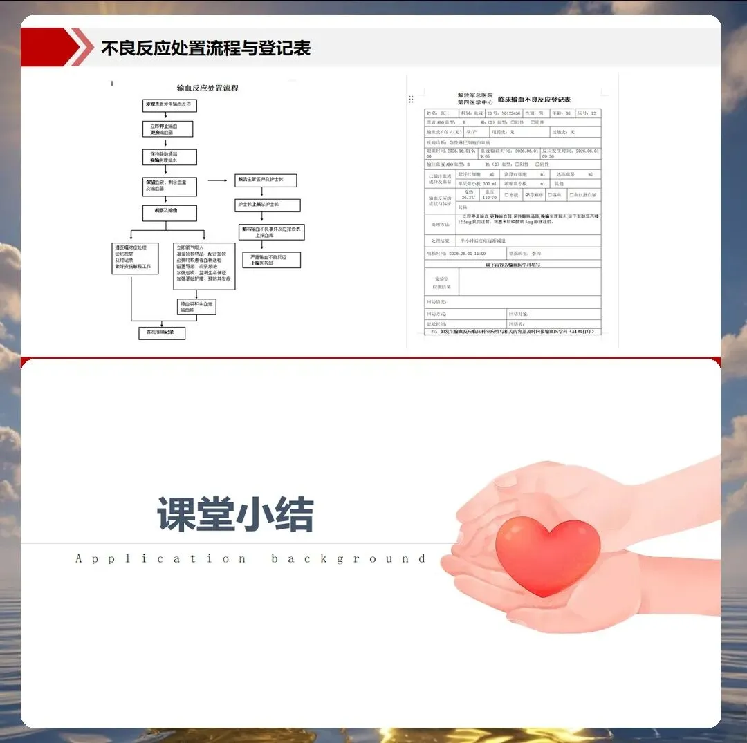 我们作为临床护士,在输血过程中扮演着重要的角色。我们是输血安全的第一道防线,也是最后一道防线。从输血前的评估,到输血过程中的监测,再到输血后的观察,每一个环节都需要我们保持高度的责任心和专业素养。