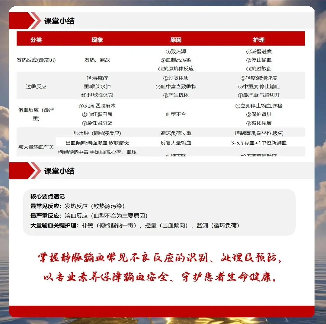 在临床护理工作中,静脉输血是我们常见的治疗手段。它在挽救患者生命的同时,也可能带来一些不良反应。作为护理人员,我们有责任了解这些不良反应的发生机制,掌握正确的处置方法,保障患者的输血安全。