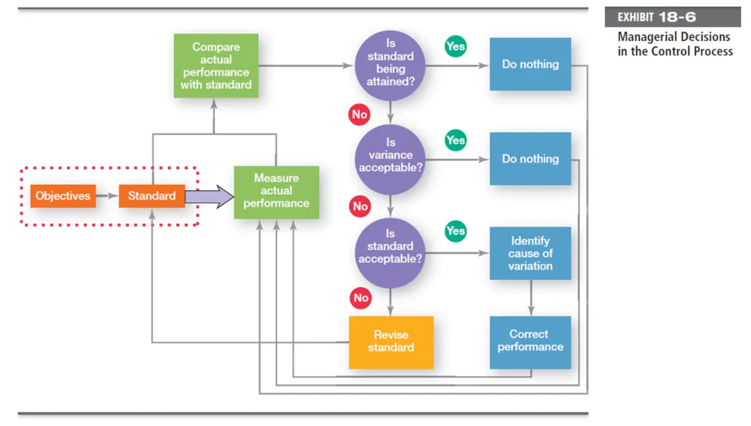 图表Managerial Decisions in the Control Process(控制进程中的管理决策),来源:罗宾斯《管理学》第11版