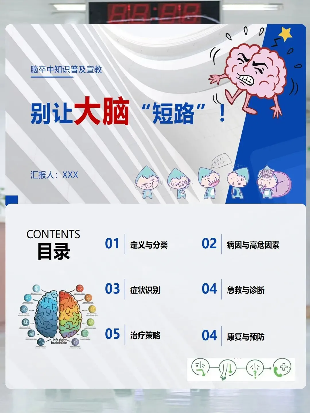 脑卒中虽凶险,但可防可治。只要我们牢记症状识别口诀,做好预防,及时救治,就能有效降低它的危害。希望今天的分享能帮助大家重视脑卒中,守护好自己和家人的健康。我的宣讲就到这里,谢谢大家!