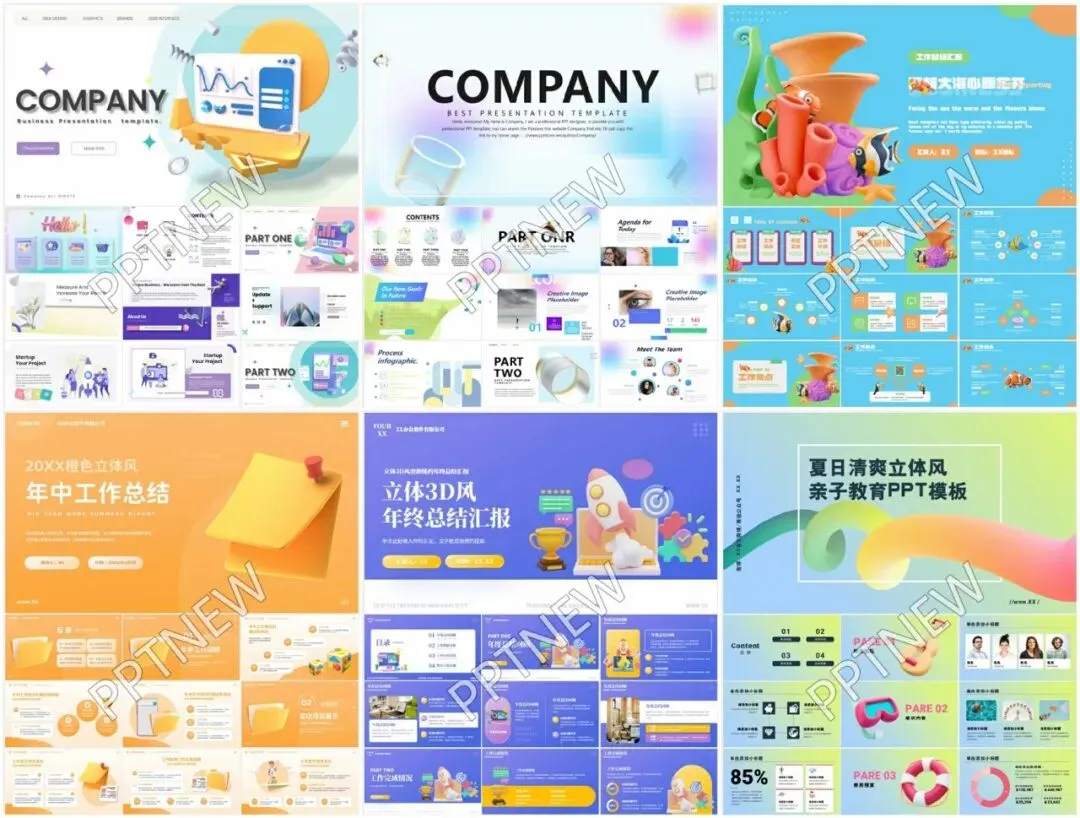 这15套3D立体PPT模板各具特色,涵盖了多种设计风格和主题,适用于不同的商务和教育场景。模板设计精美,色彩搭配和谐,视觉效果出色,能够吸引观众的注意力。
