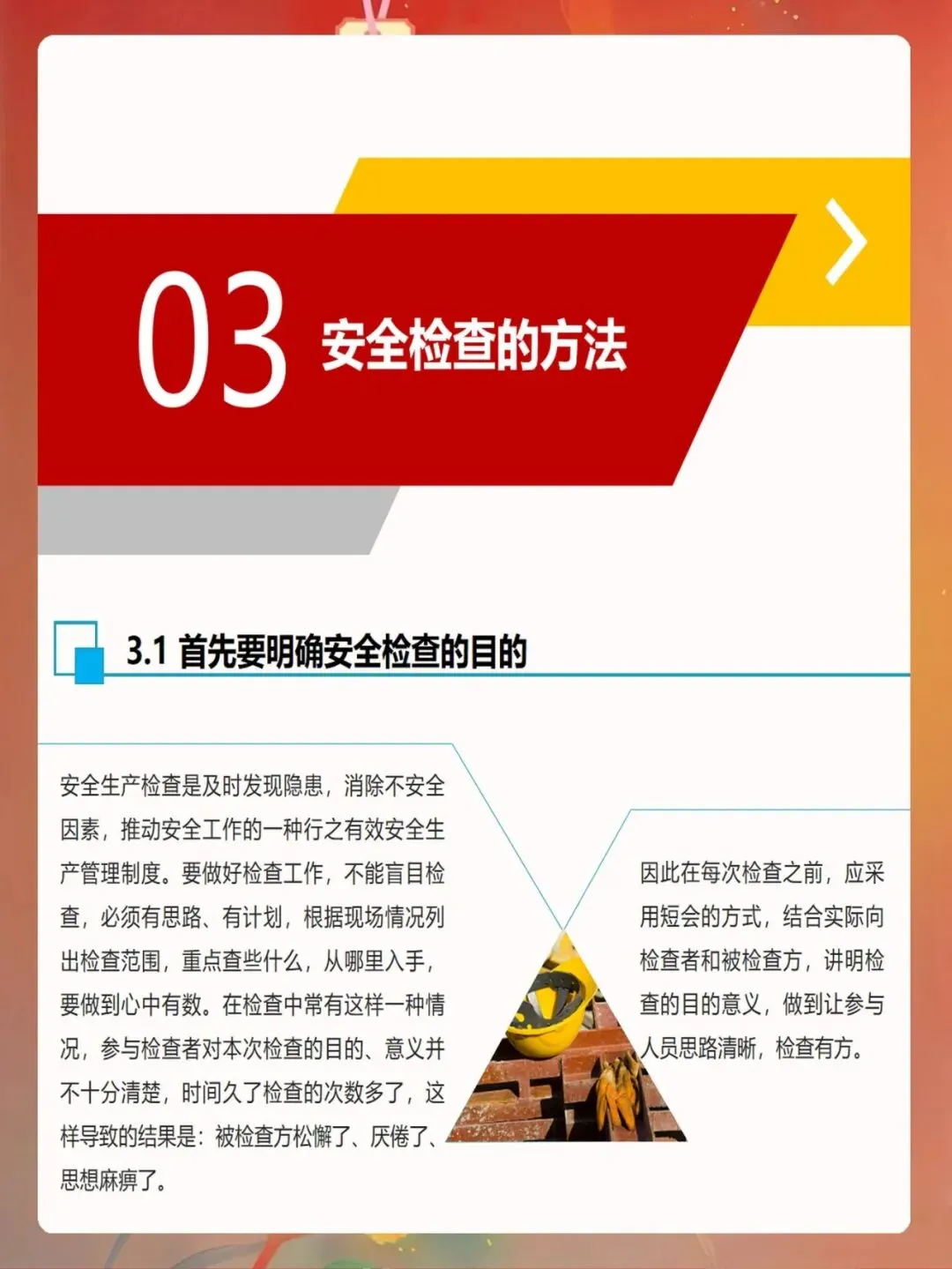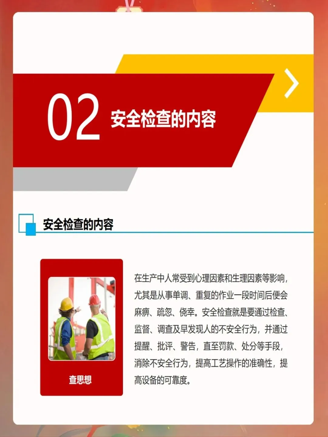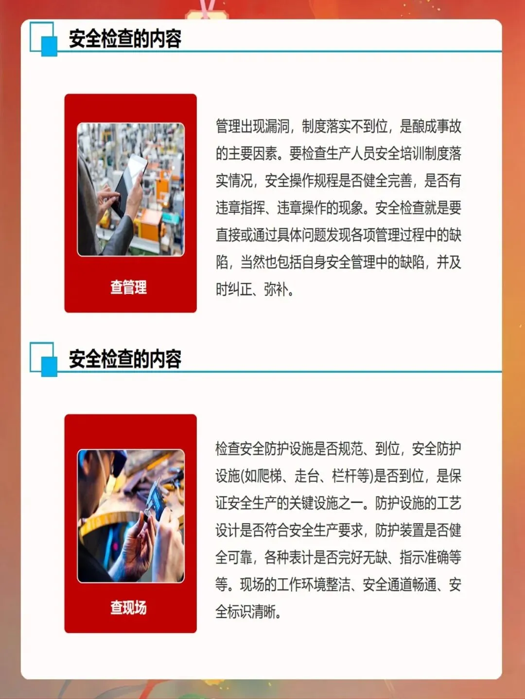 作为安全管理人员,我们要深刻认识安全检查的重要性,以高度的责任感做好这项工作。通过科学有效的安全检查,及时发现和消除各类隐患,防范事故发生,为企业安全生产保驾护航。