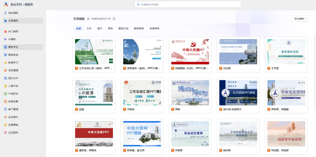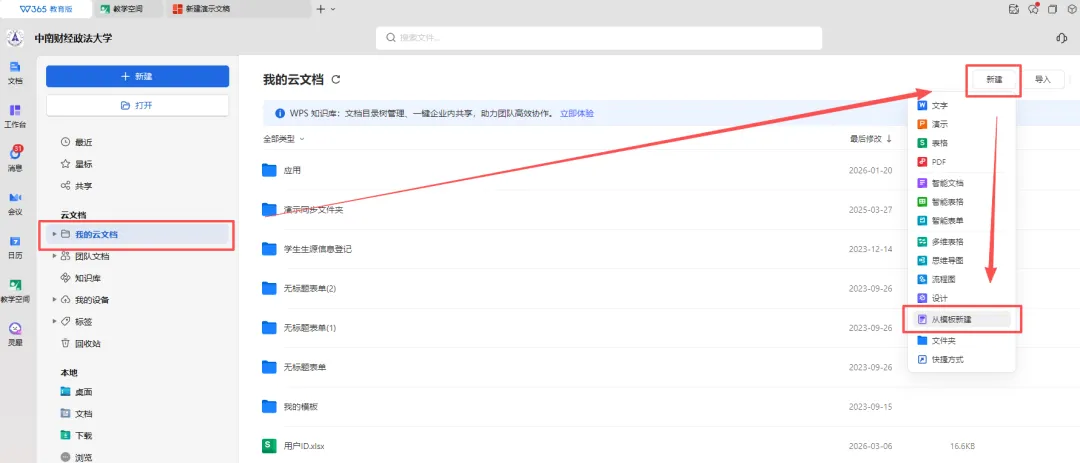 方法二:点击【我的云文档】-【新建】-【从模板新建】,选择【共享模板】,点击喜欢模板即可编辑使用。