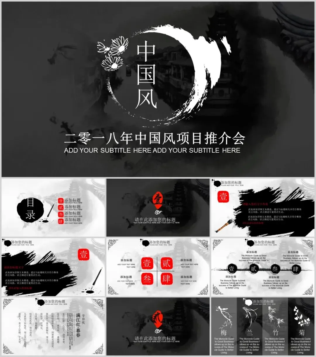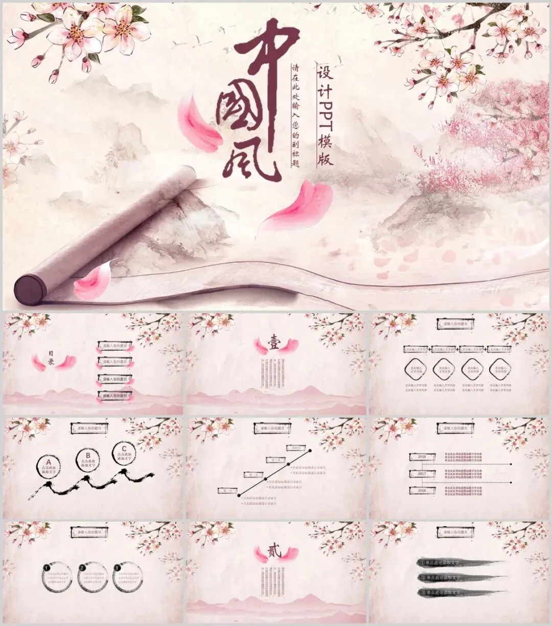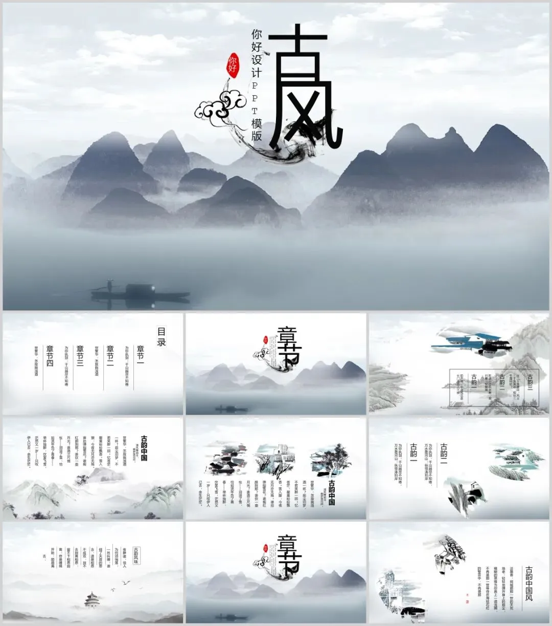 中国风PPT模板100套,可编辑可下载。部分内容预览如下,完整版下载方式见文末。
