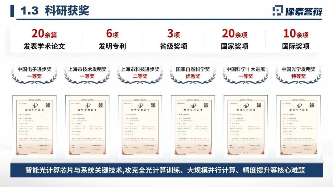 硬核呈现以光子计算领域科研叙事逻辑搭建内容,明确核心突破、技术指标与创新点,量化呈现科研数据与实际应用成果;最后提炼学术贡献与产业价值,夯实研究基础,充分体现研究的科学性、创新性与实用性。