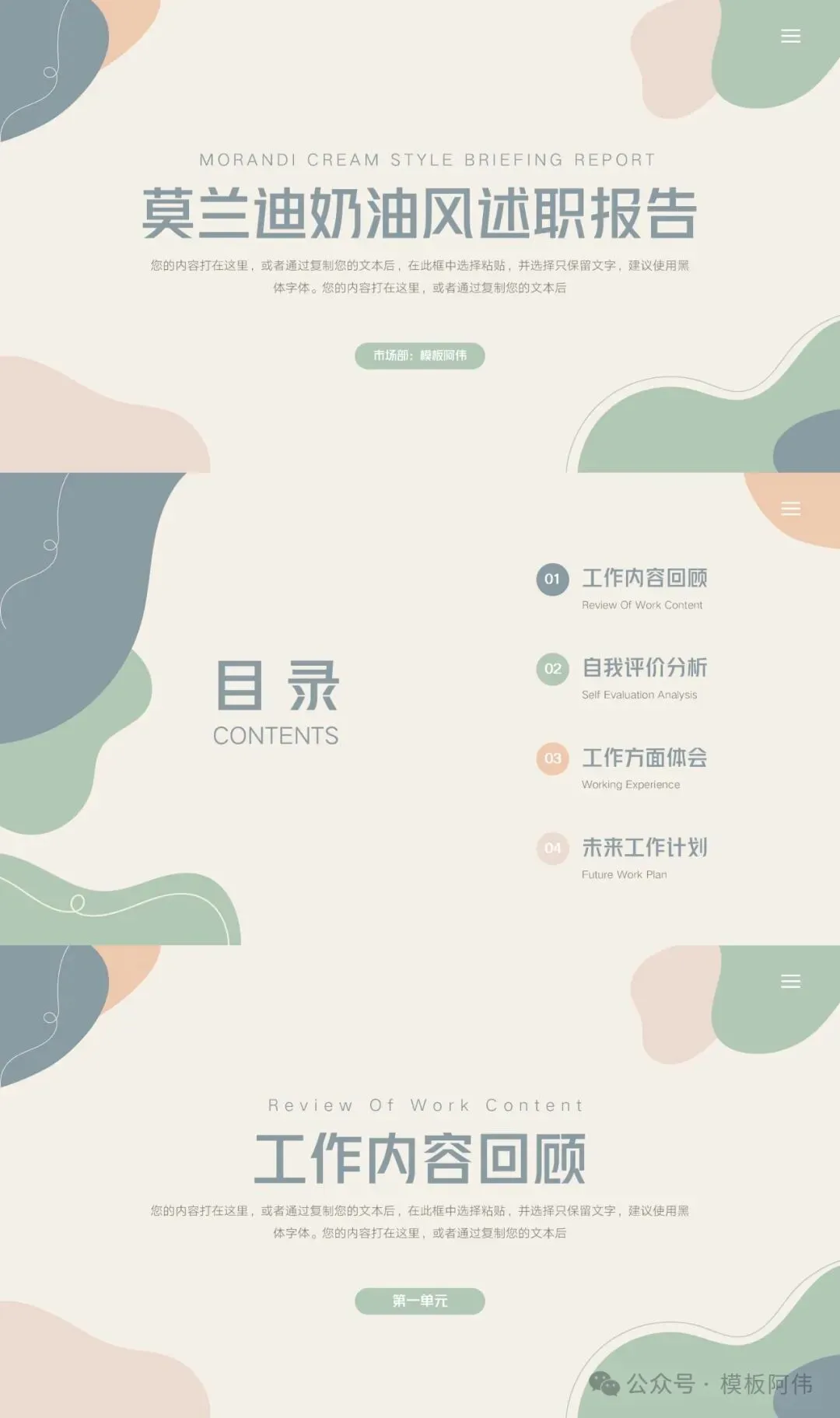莫兰迪奶油风述职报告PPT模板