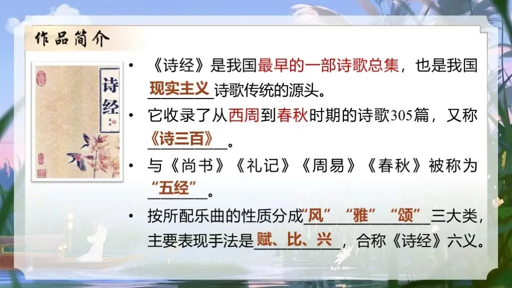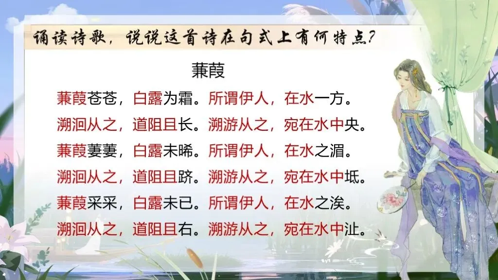【教赛PPT模板—免费分享】示例:《蒹葭》(接定制)