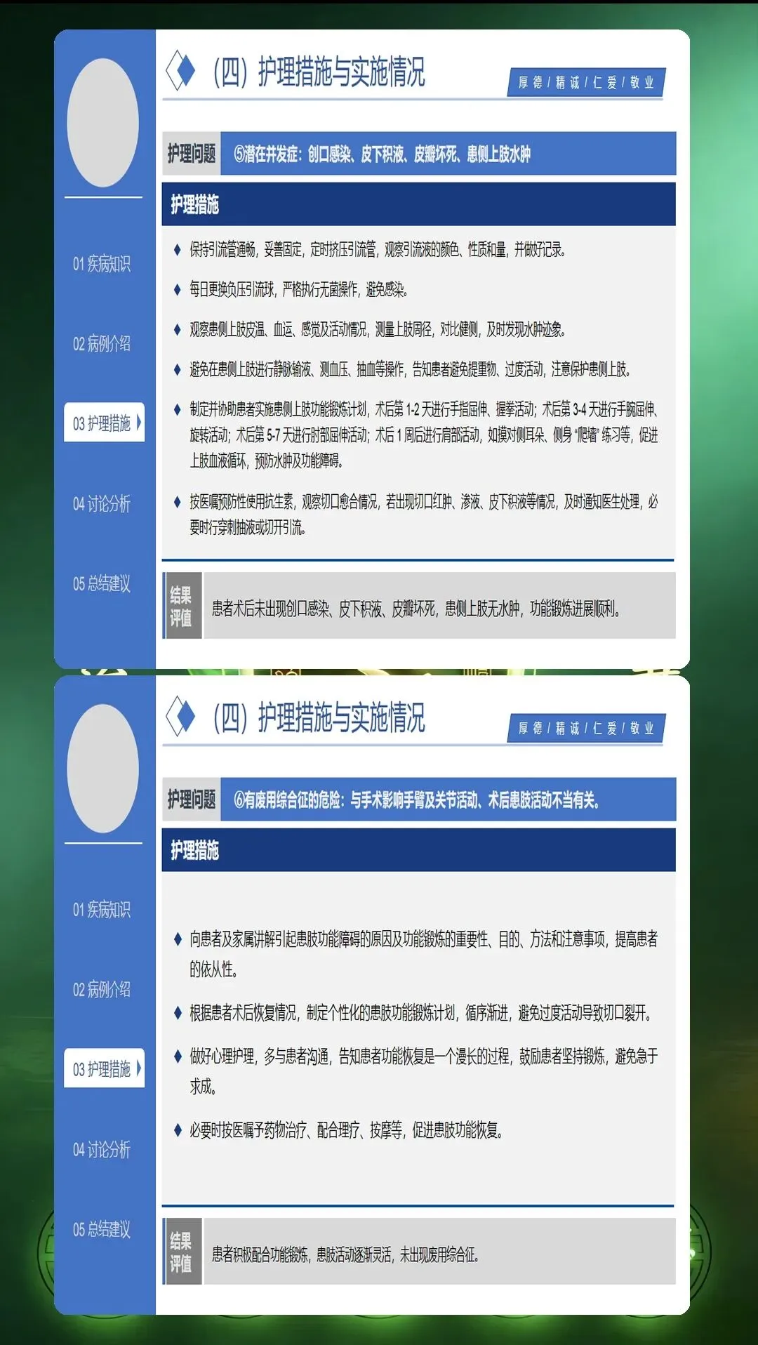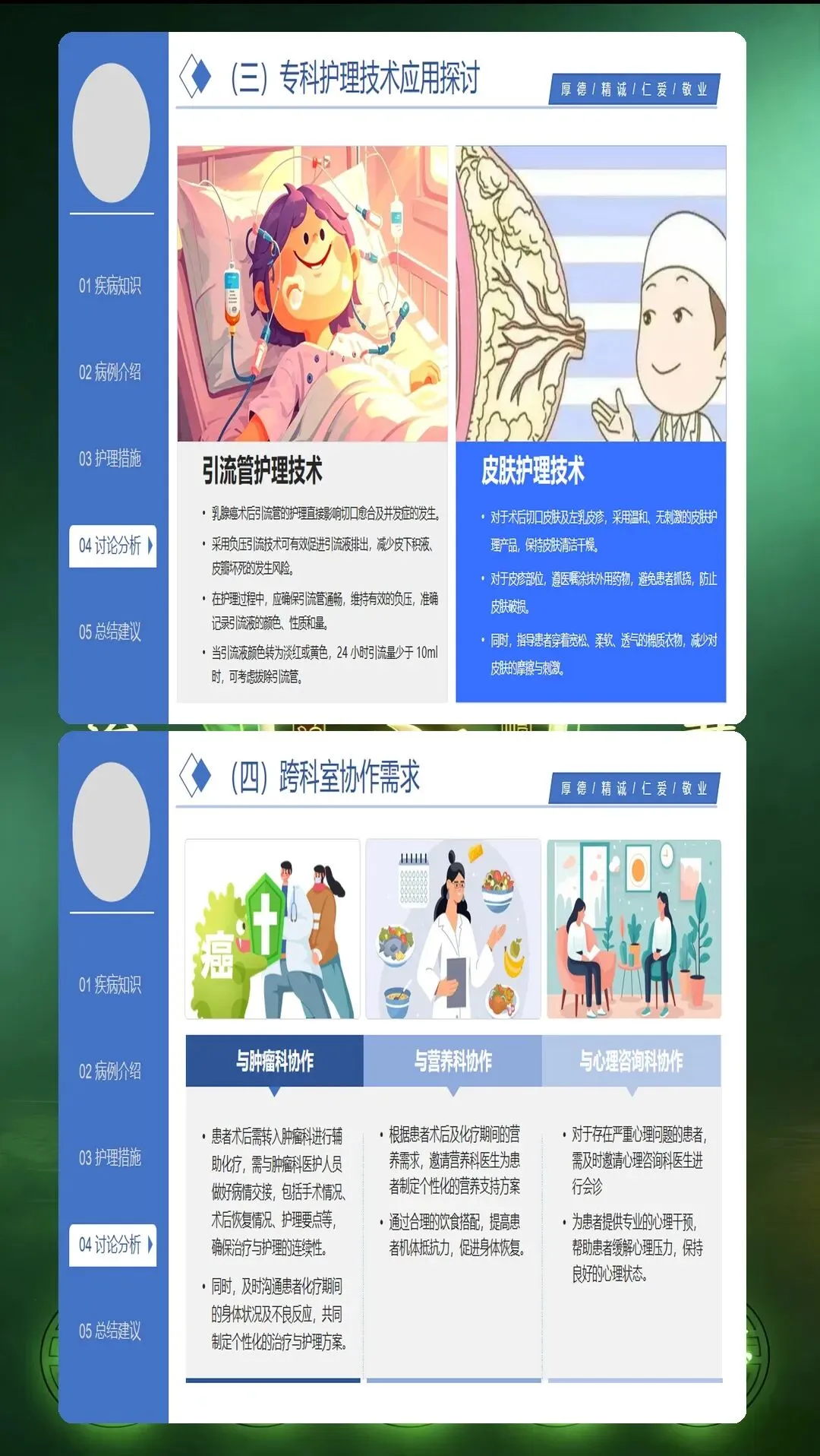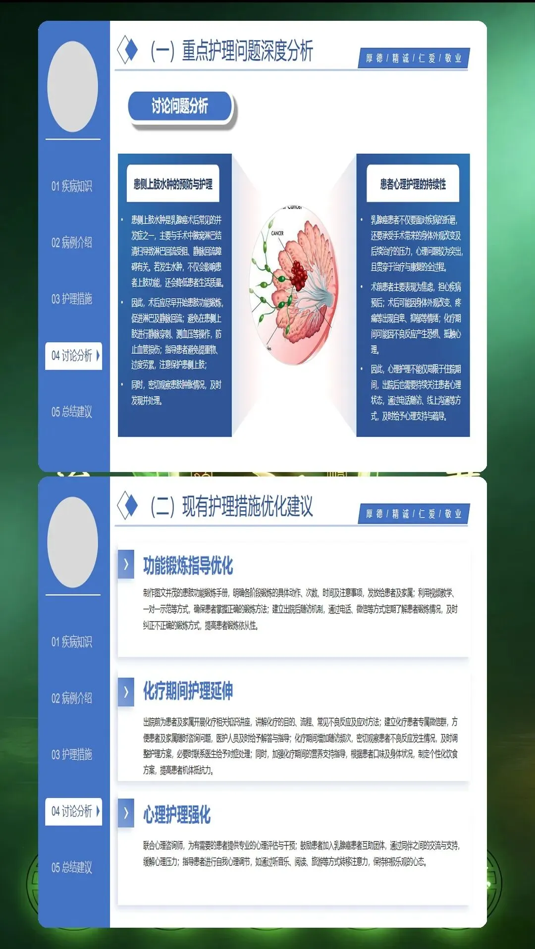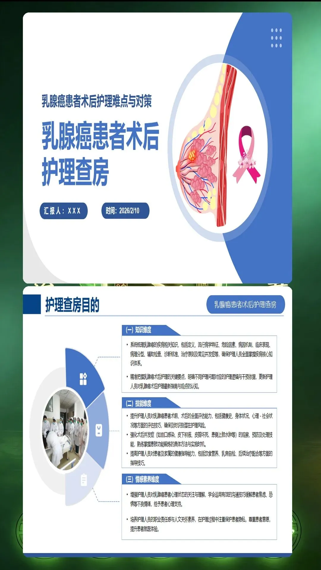 乳腺癌术后护理查房是提升护理质量的重要平台。通过系统的评估、精准的干预、全程的照护,能够帮助患者顺利度过术后恢复期,重拾健康生活。全人照护的理念,让护理不仅关注身体的康复,更注重心理的重建和生活的回归。每一次护理查房,都是专业能力的体现,也是人文关怀的传递。