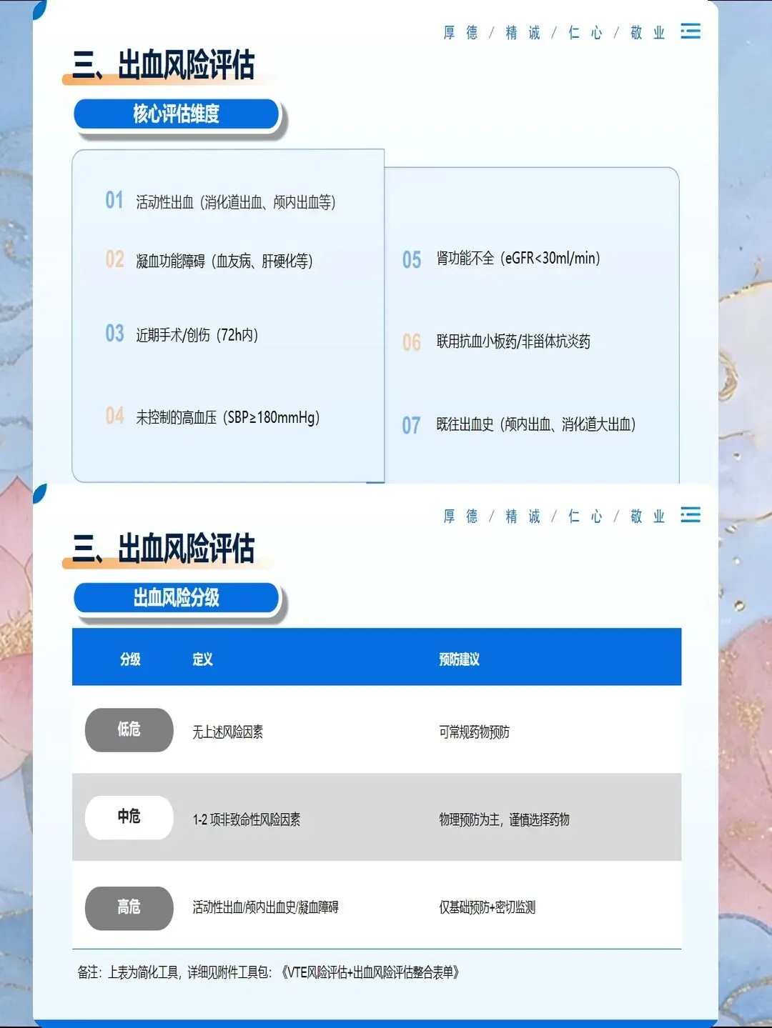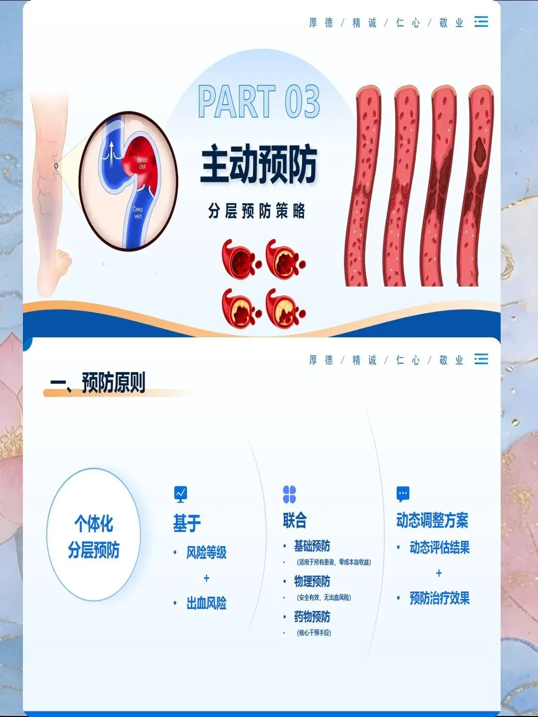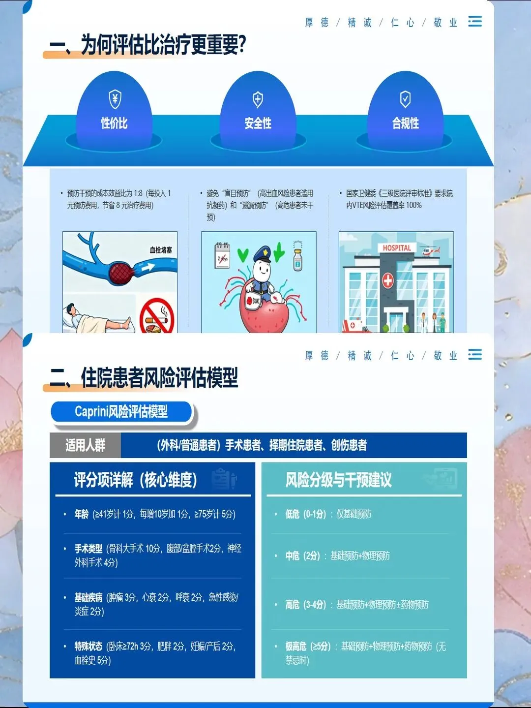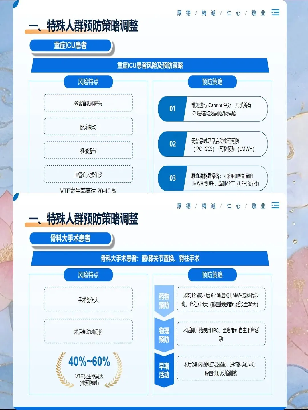评估完成后,要制定个体化的预防方案:高风险患者使用细管径导管,选择粗血管,每班观察穿刺部位;低风险患者可以使用常规导管,但也要每班观察,不要掉以轻心。