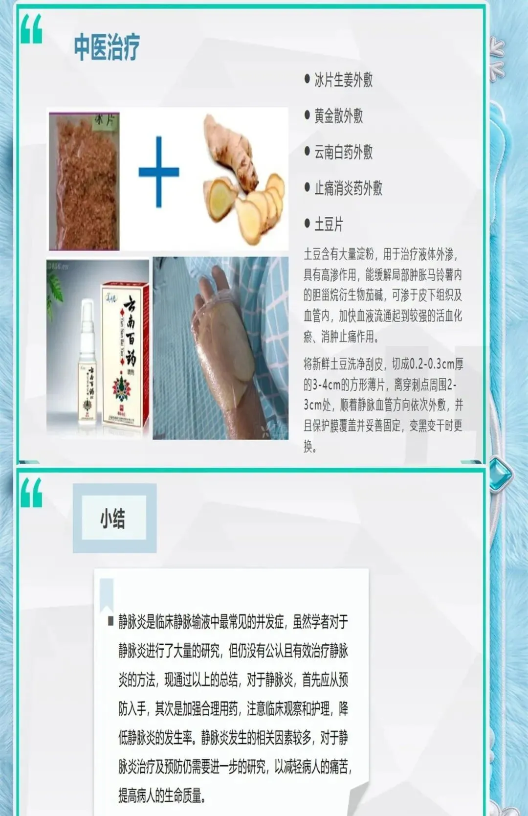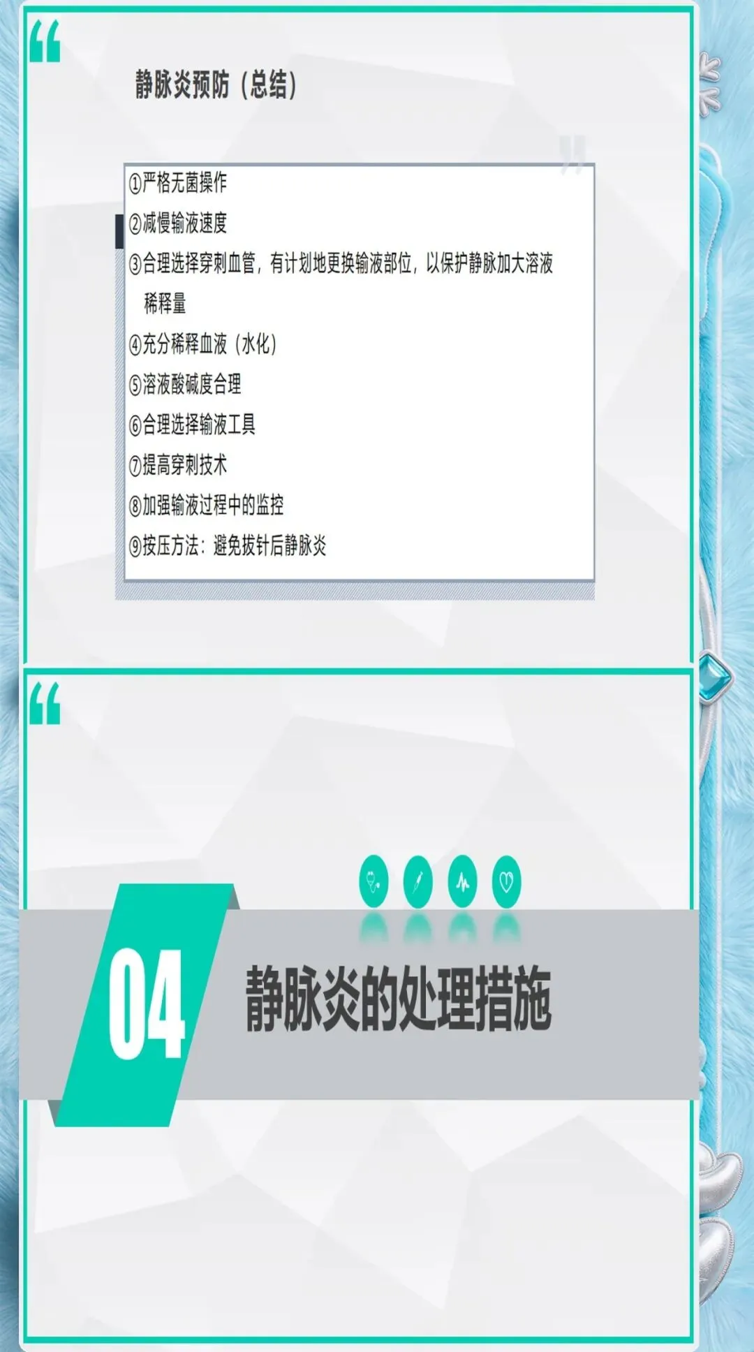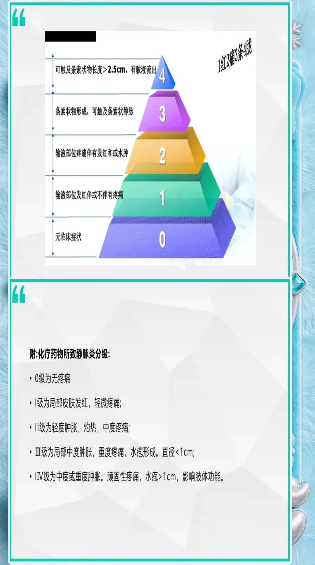 药物引起的化学性静脉炎占静脉炎的40%-50%,是最常见的类型。规范的药物管理可以大大降低化学性静脉炎的发生率。