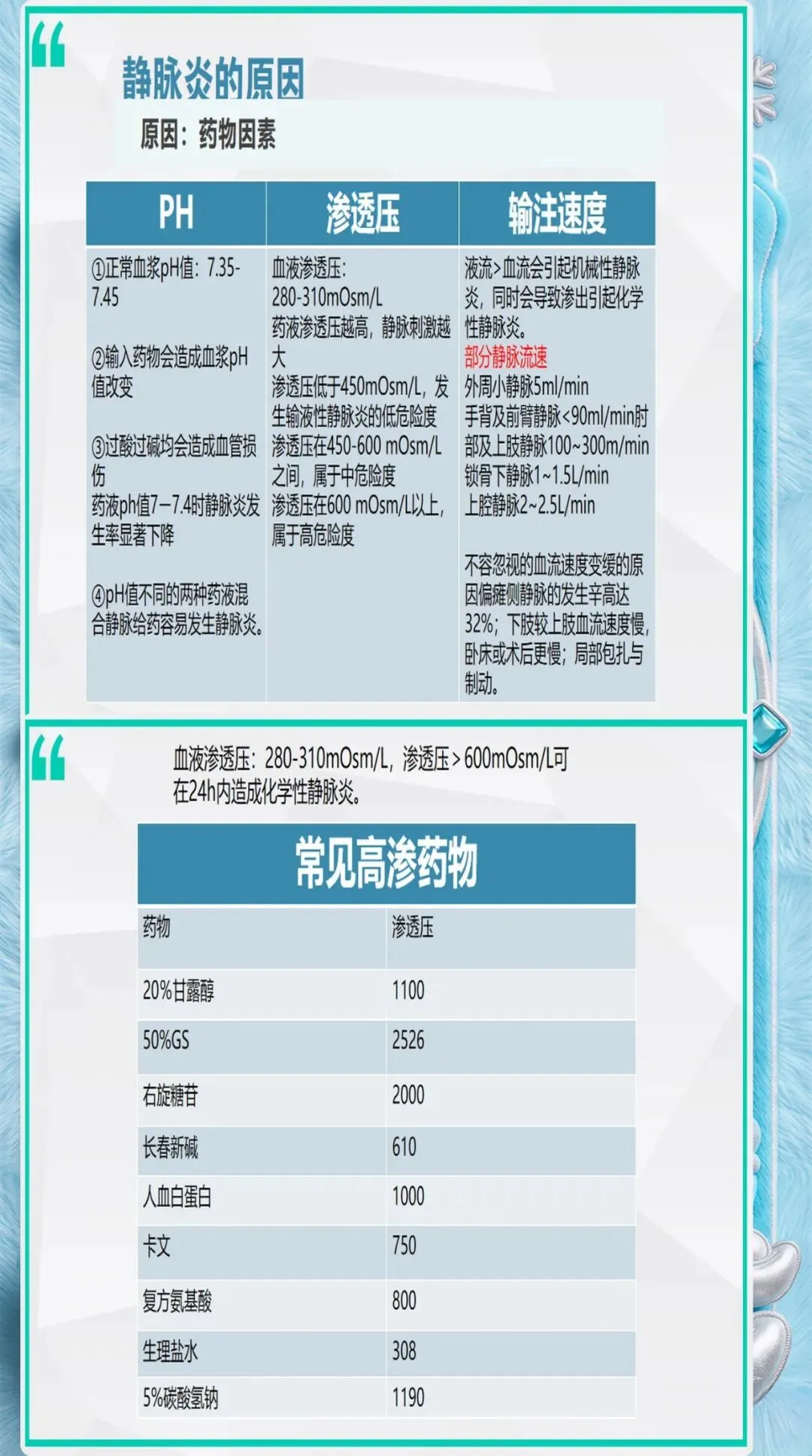 输注速度:刺激性药物应缓慢输注,避免过快输注导致血管内皮损伤。例如,甘露醇250ml应在30-60分钟内输注完毕,不应快速推注。