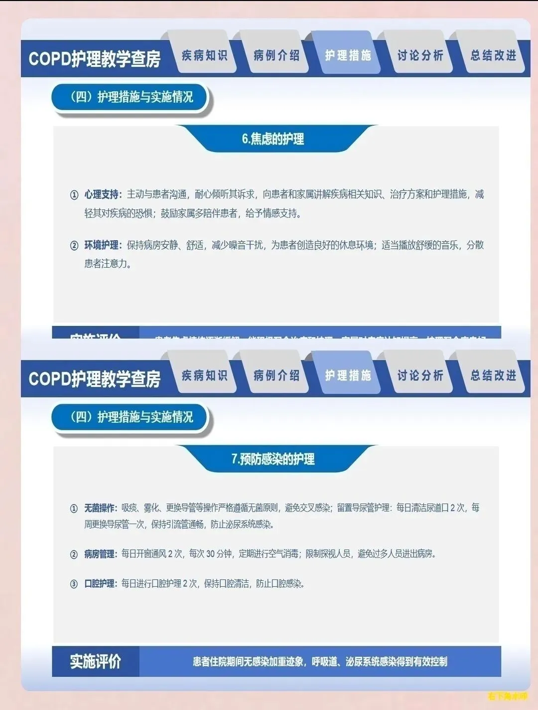 生物标志物的变化趋势也很重要。嗜酸性粒细胞计数升高、血清淀粉样蛋白A水平升高、降钙素原轻度升高等,都可能预示急性加重的风险。很多护士认为这些指标只是医生关注的,但护理查房时了解这些指标的变化,有助于提前识别风险,及时调整护理措施。