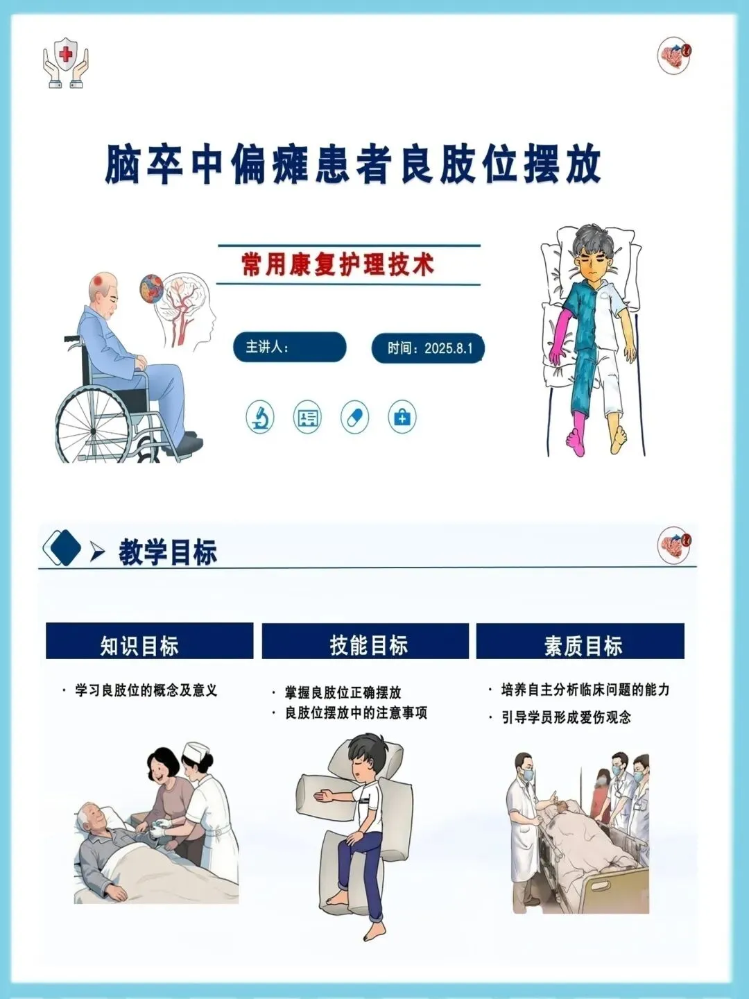 <护理ppt模板>脑卒中偏瘫患者良肢位摆放ppt模板(可编辑)