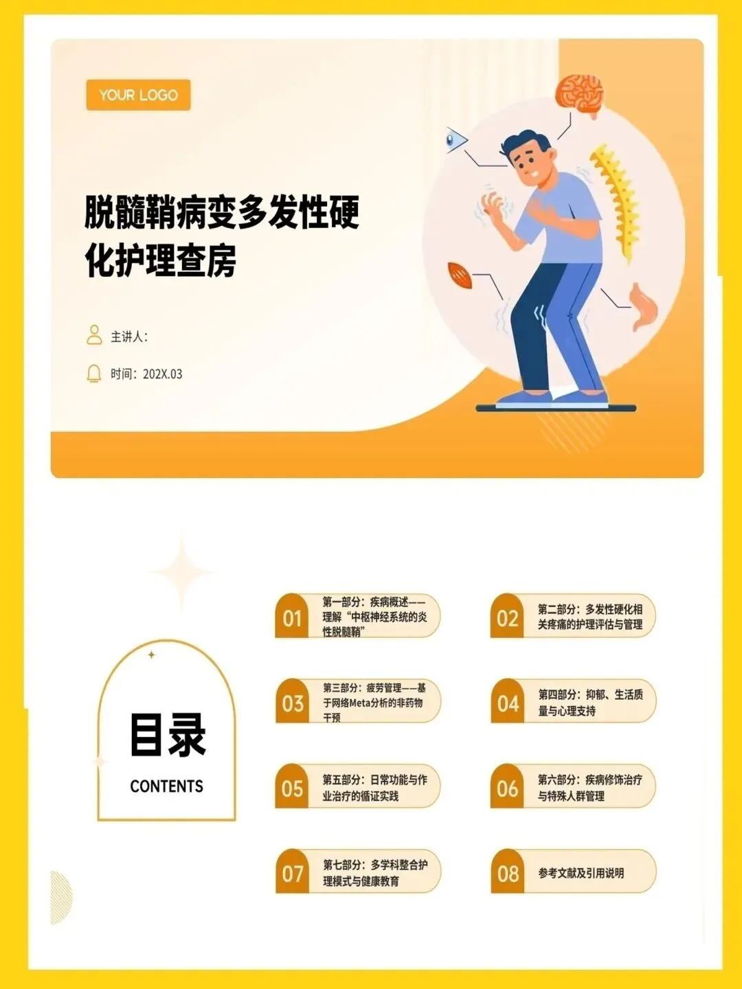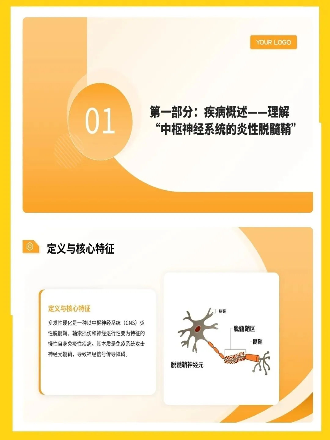 【护理PPT模板】脱髓鞘病变多发性硬化护理查房PPT模板