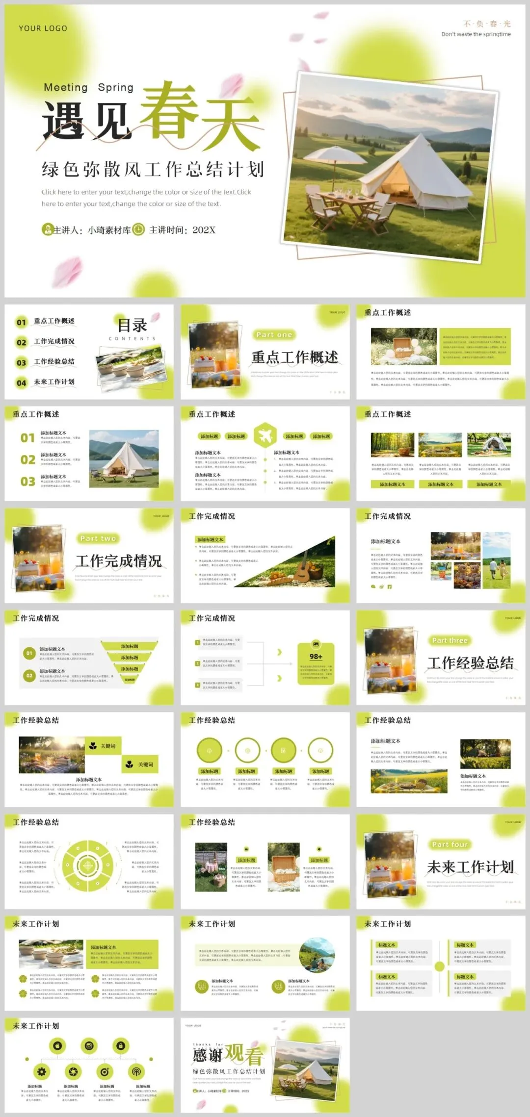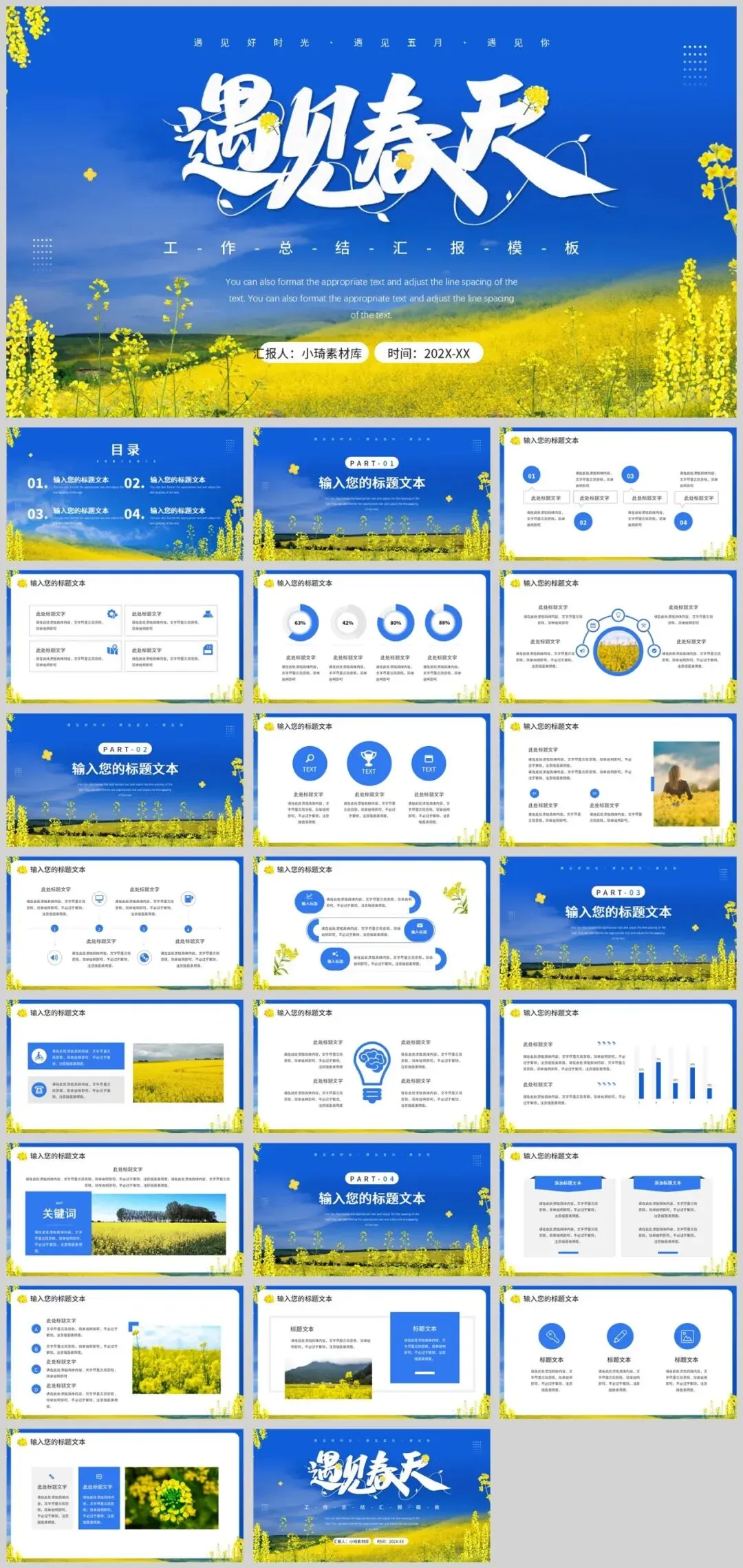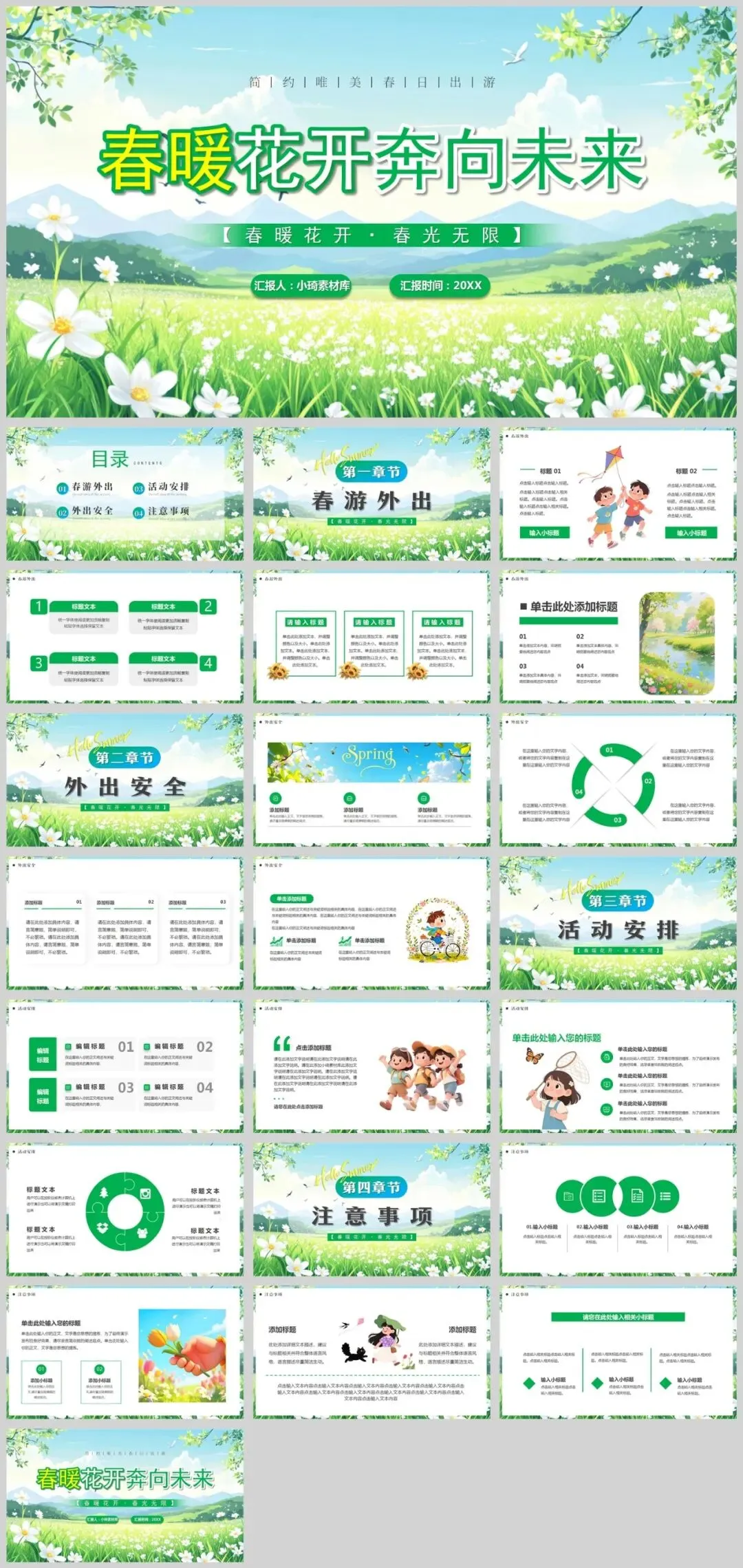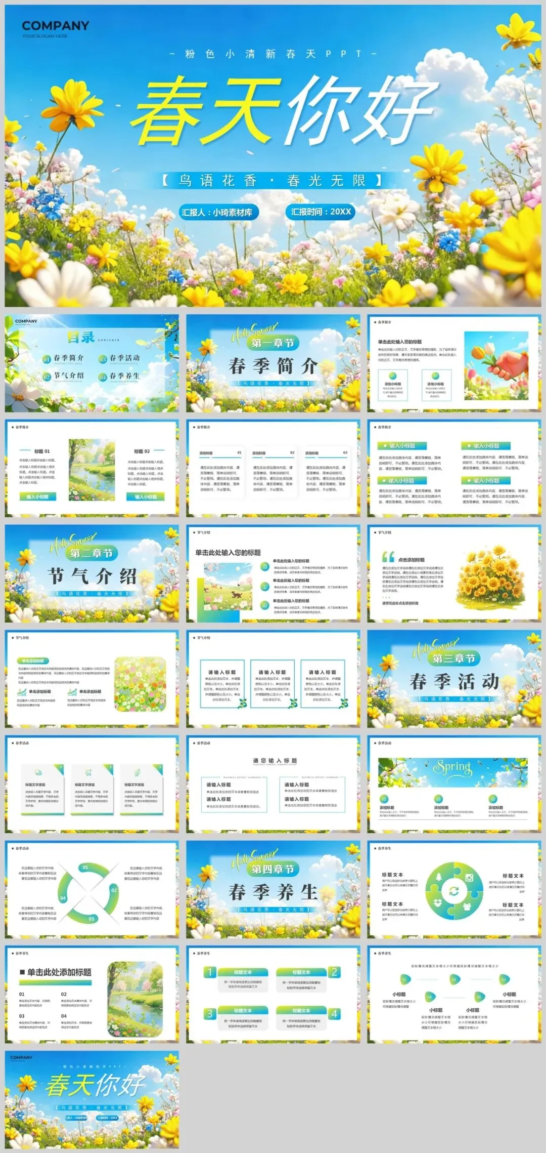 公众号改推送机制啦!点左上角蓝字小琦素材库,设置星标★,好资源不错过!春意盎然,13套唯美春天主题PPT模板助您焕新演示!精选小清新等多种风格,每套模板均采用春天标志性元素——桃花、垂柳、燕子等,搭配淡雅蓝绿配色,完美呈现生机勃勃的春季氛围。适用于工作汇报、教学说课、校园招聘等多种场景,让您在春季演示中脱颖而出。是不是很棒的资源呢