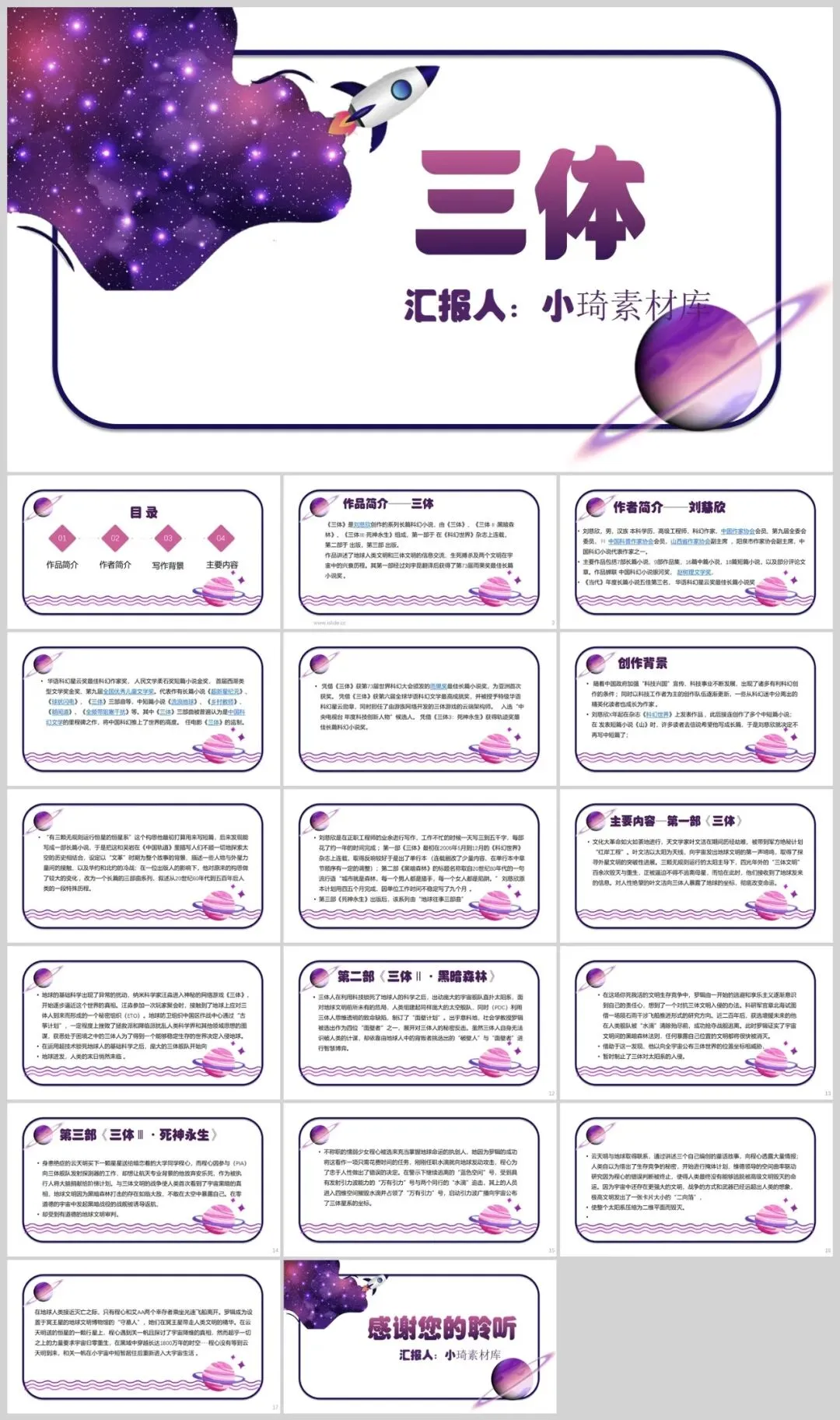 本期小琦要分大家分享的是12套《三体》读书阅读笔记PPT。