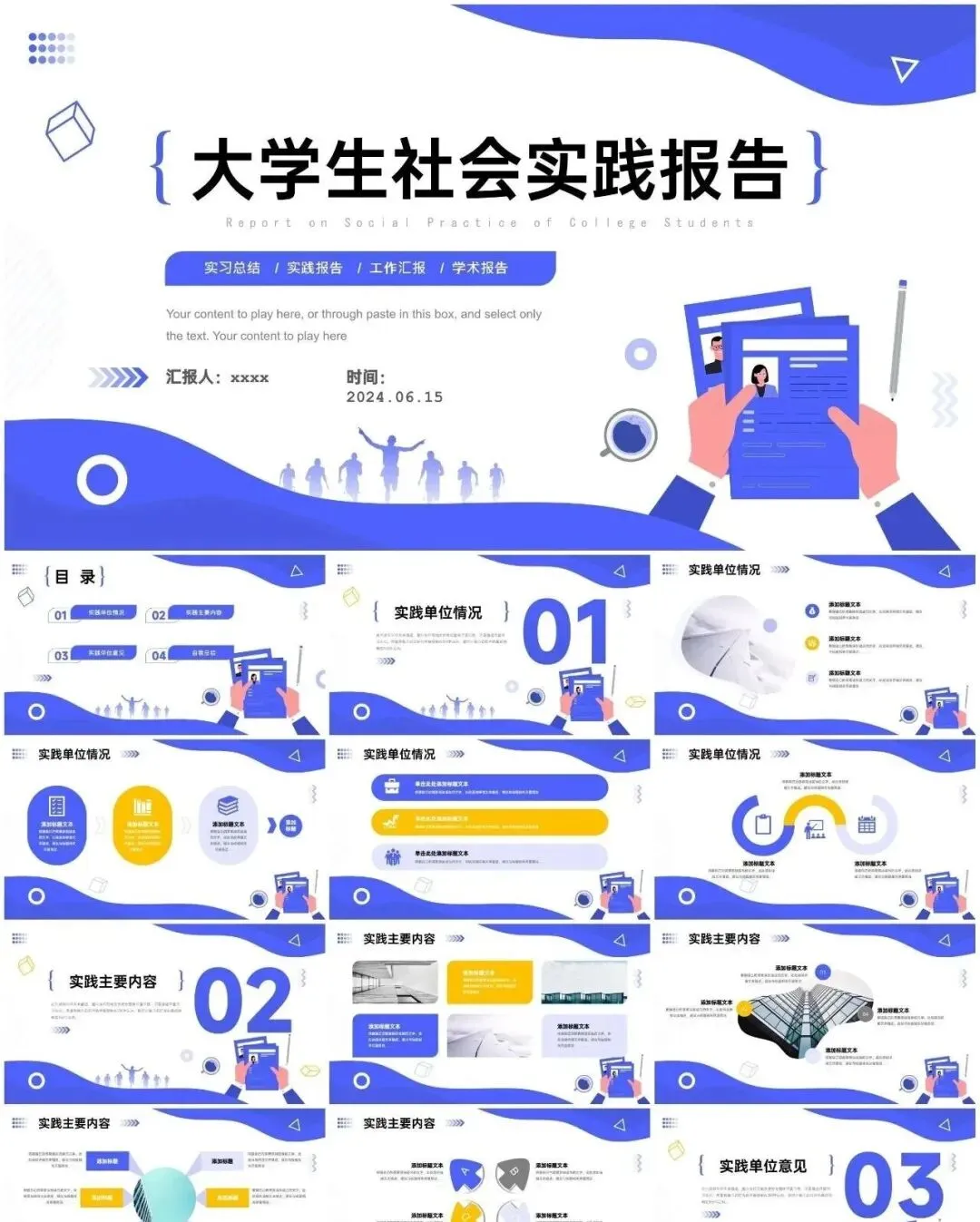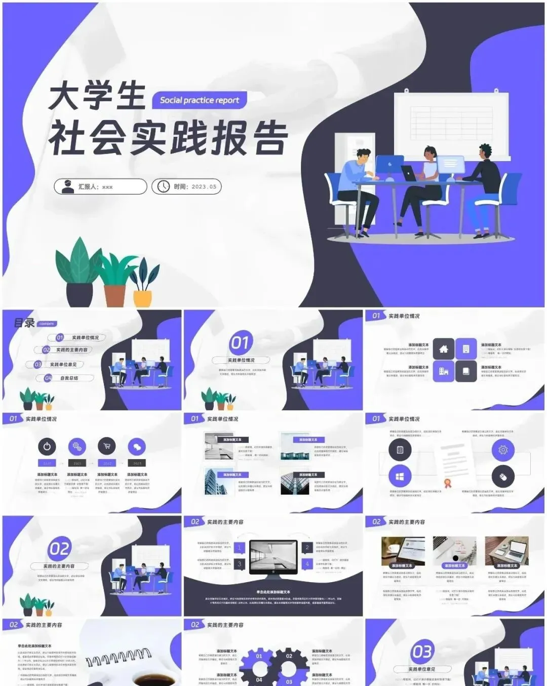 本文内容分享【大学生社会实践PPT模板】